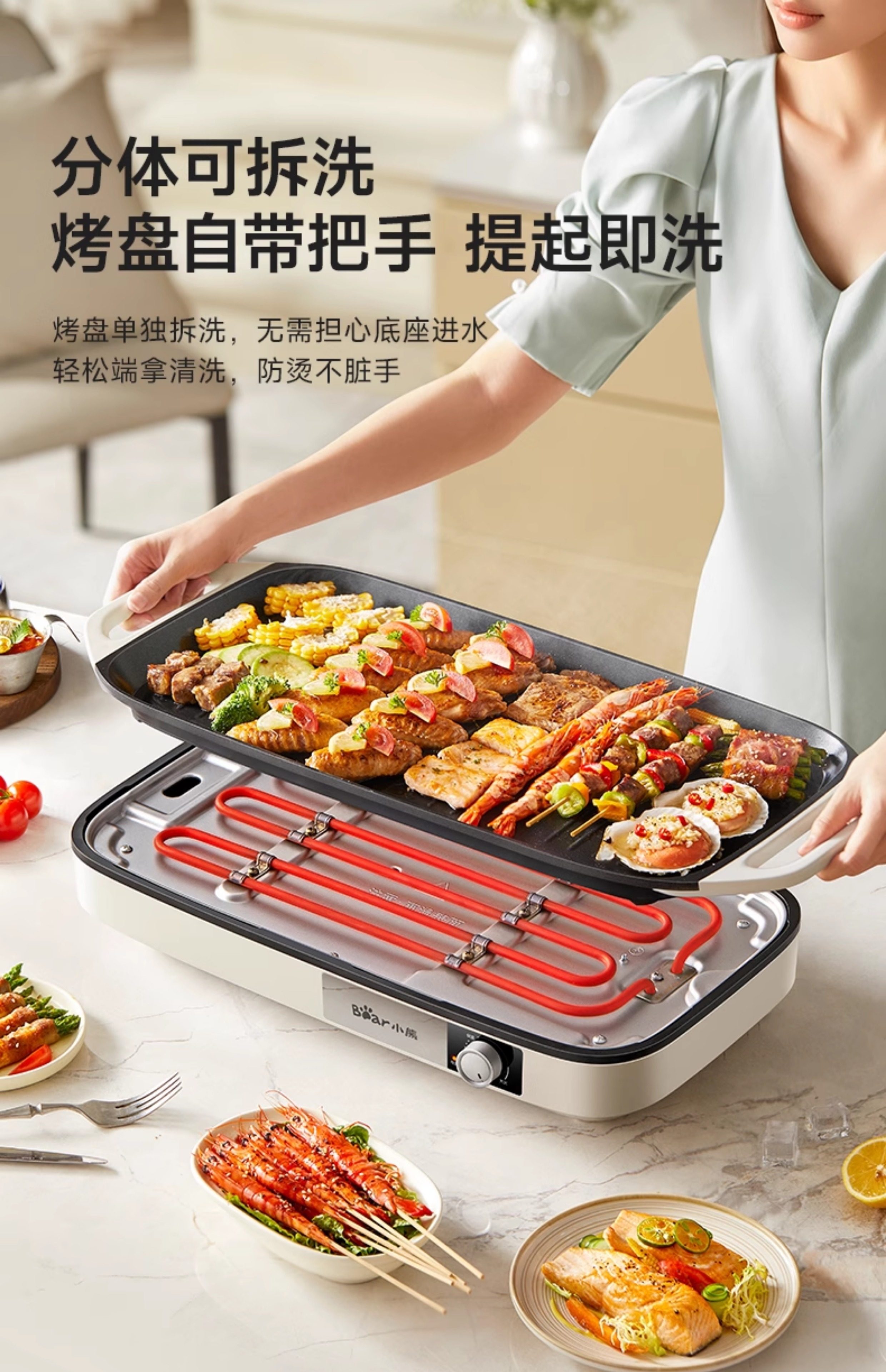 Bear-Shaped Barbecue Grill for Home Use, Integrated Grill and Fish Plate, Indoor Low-Smoke Cooking Machine, Detachable and Washable, Outdoor Electric Grill