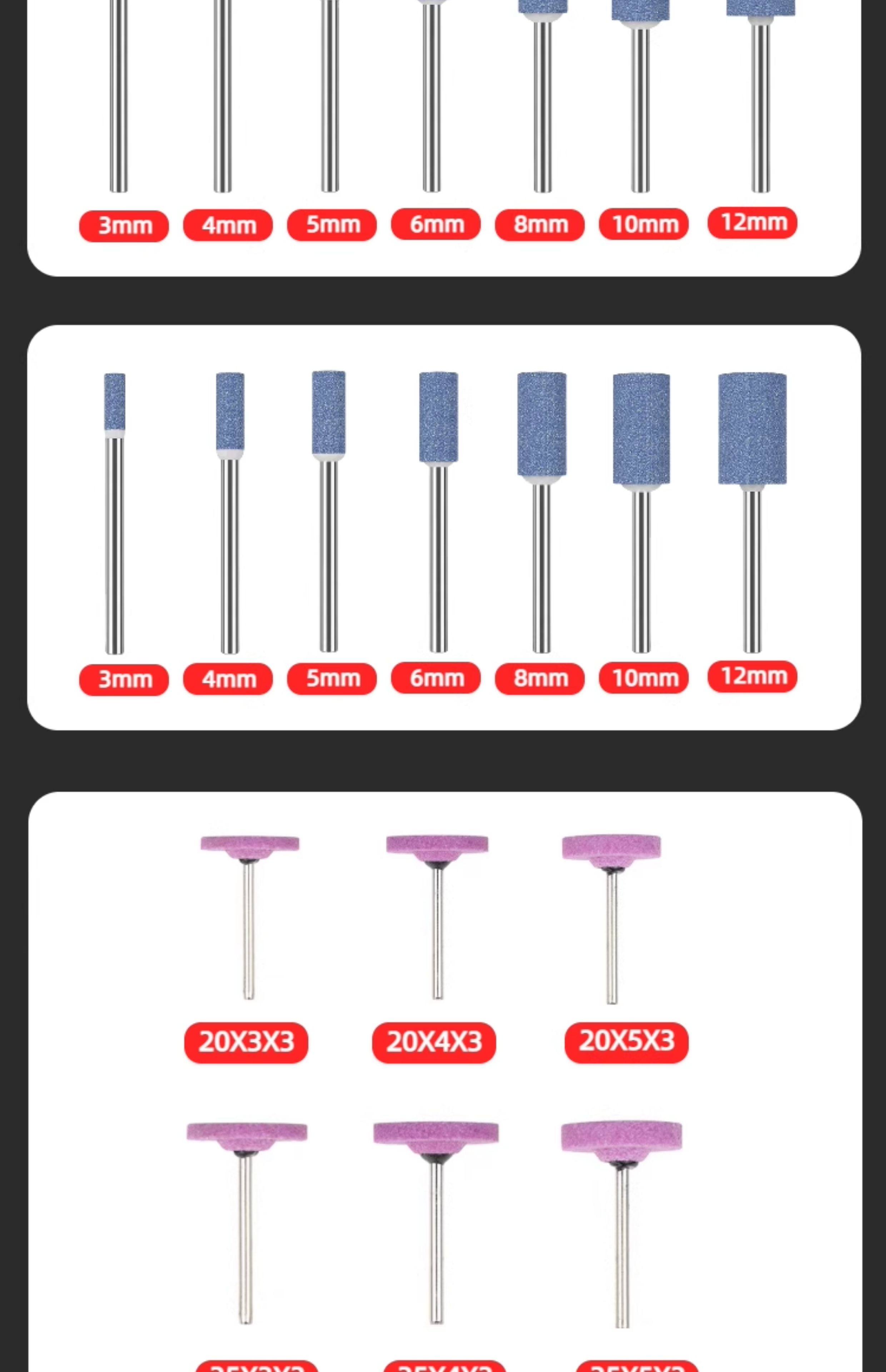 | Color Classification | Blue Corundum 3*3 Peach Shape (10 Pieces) Trial Pack,Blue Corundum 3*4 Peach Shape (10 Pieces) Trial Pack,Blue Corundum 3*5 Peach Shape (10 Pieces) Trial Pack,Blue Corundum 3*6 Peach Shape (10 Pieces) Trial Pack,Blue Corundum 3*8 Peach Shape (10 Pieces) Trial Pack,Blue Corundum 3*10 Peach Shape (10 Pieces) Trial Pack,Blue Corundum 3*12 Peach Shape (10 Pieces) Trial Pack,Blue Corundum 3*3 Cylinder (10 Pieces) Trial Pack,Blue Corundum 3*4 Cylinder (10 Pieces) Trial Pack,Blue Corundum 3*5 Cylinder (10 Pieces) Trial Pack,Blue Corundum 3*6 Cylinder (10 Pieces) Trial Pack,Blue Corundum 3*8 Cylinder (10 Pieces) Trial Pack,Blue Corundum 3*10 Cylinder (10 Pieces) Trial Pack,Blue Corundum 3*12 Cylinder (10 Pieces) Trial Pack,Ruby Corundum 3*3 Peach-Shaped (10 Pieces) Trial Pack,Ruby Corundum 3*4 Peach-Shaped (10 Pieces) Trial Pack,Ruby Corundum 3*5 Peach-Shaped (10 Pieces) Trial Pack,Ruby Corundum 3*6 Peach-Shaped (10 Pieces) Trial Pack,Ruby Corundum 3*8 Peach-Shaped (10 Pieces) Trial Pack,Ruby Corundum 3*10 Peach-Shaped (10 Pieces) Trial Pack,Ruby Corundum 3*12 Peach-Shaped (10 Pieces) Trial Pack,Red Corundum 3*3 Cylinder (10 Pieces) Trial Pack,Ruby Corundum 3*4mm Cylinder (10 Pieces) - Trial Pack,Ruby Corundum 3*5mm Cylinder (10 Pieces) - Trial Pack,Ruby Corundum 3*6mm Cylinder (10 Pieces) - Trial Pack,Ruby Corundum 3*8mm Cylinder (10 Pieces) - Trial Pack,Ruby Corundum 3*10 Cylindrical Grinding Wheel (10 Pieces) - Trial Pack,Ruby Corundum 3*12 Cylindrical Grinding Rods (10-Piece Trial Pack),Red Corundum T-Shaped 20*2*3 Handle [10 Pieces] Trial Pack,Red Corundum T-Shaped 20*3*3 Handle [10 Pieces] Trial Pack,Red Corundum T-Shaped 20*4*3 Handle [10 Pieces] Trial Pack,Red Corundum T-Shaped 20*5*3 Handle [10 Pieces] Trial Pack,Red Corundum T-Shaped 25*3*3 Handle [10 Pieces] Trial Pack,Red Corundum T-Shaped 25*4*3 Handle [10 Pieces] Trial Pack,Red Corundum T-Shaped 25*5*3 Handle [10 Pieces] Trial Pack |