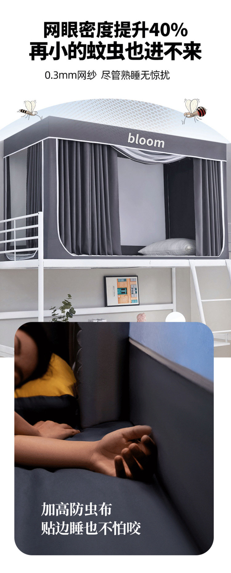 Class a Strong Blackout Mosquito Net for College Dormitory, Full Coverage 2025 New Model, Single Bed Bunk Bed, No Installation Required Bed Curtain a