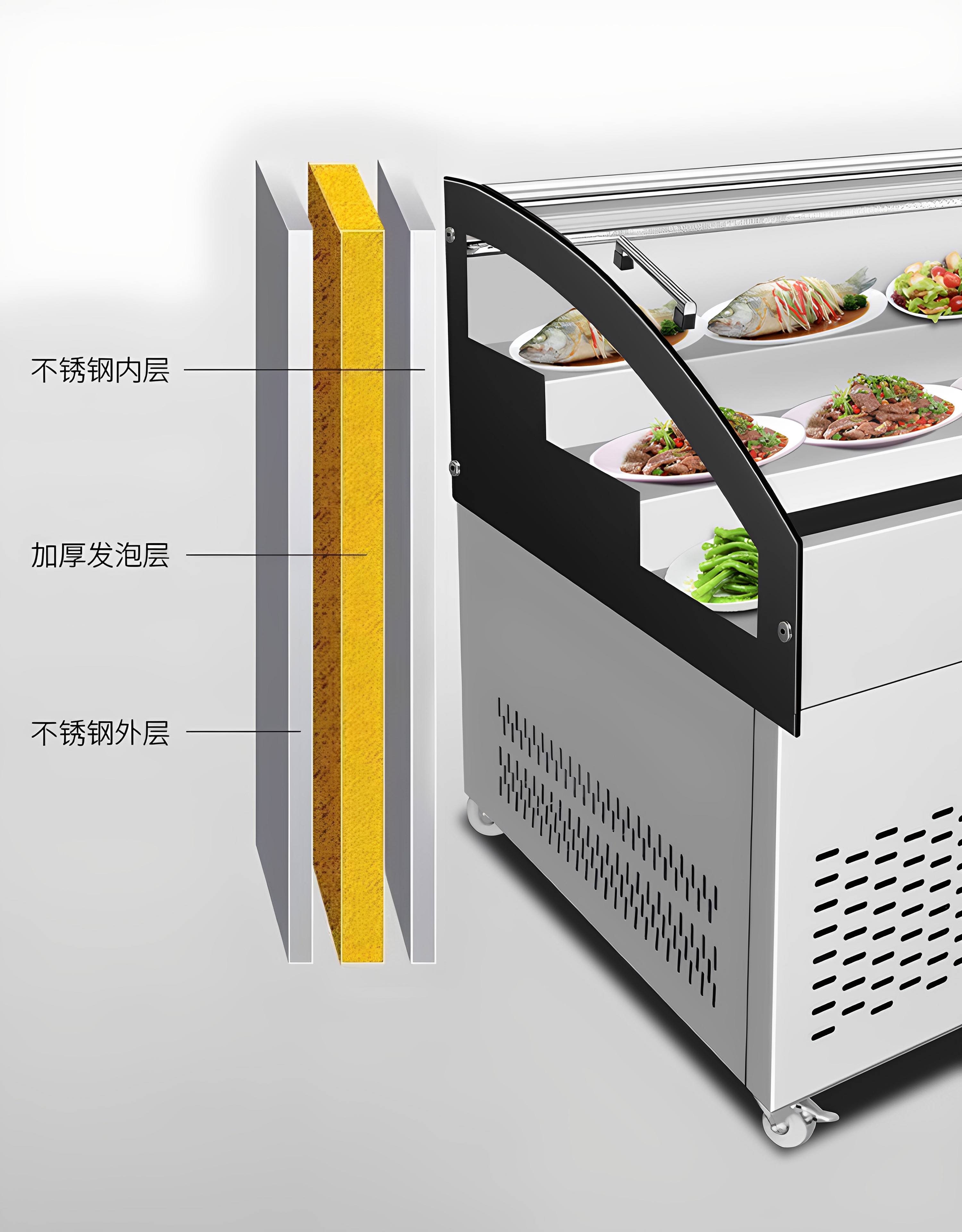 Yangzi Three-Temperature Three-Step Display Cabinet Ice Table Commercial Cooked Food Cold Dish Ordering Cabinet Refrigerated Seafood Barbecue Refrigerator