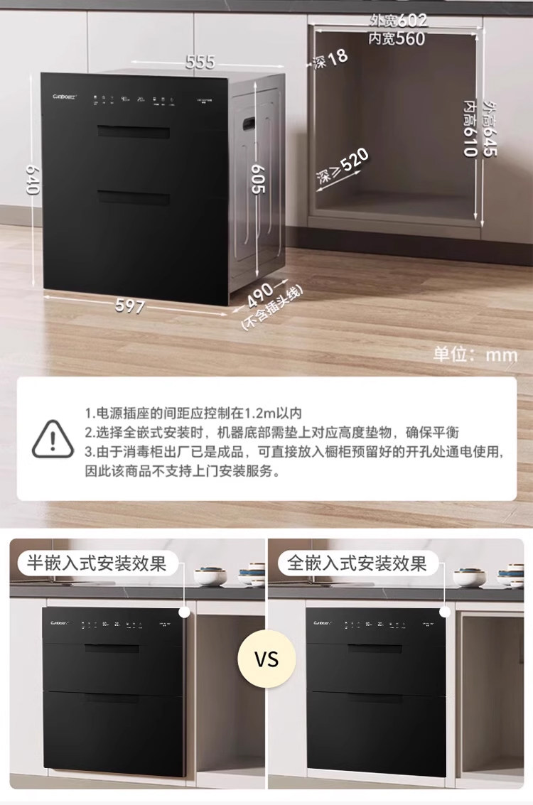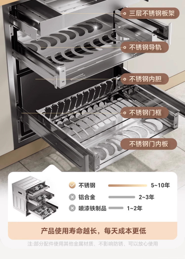 Kangbao Disinfection Cabinet for Home Use 2025 New Model Embedded Rock 304 Stainless Steel Kitchen Dish and Cutlery Drying Cabinet