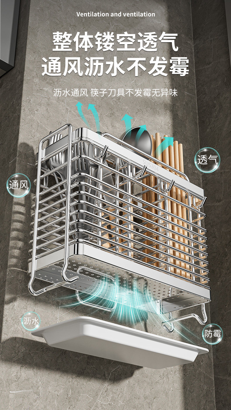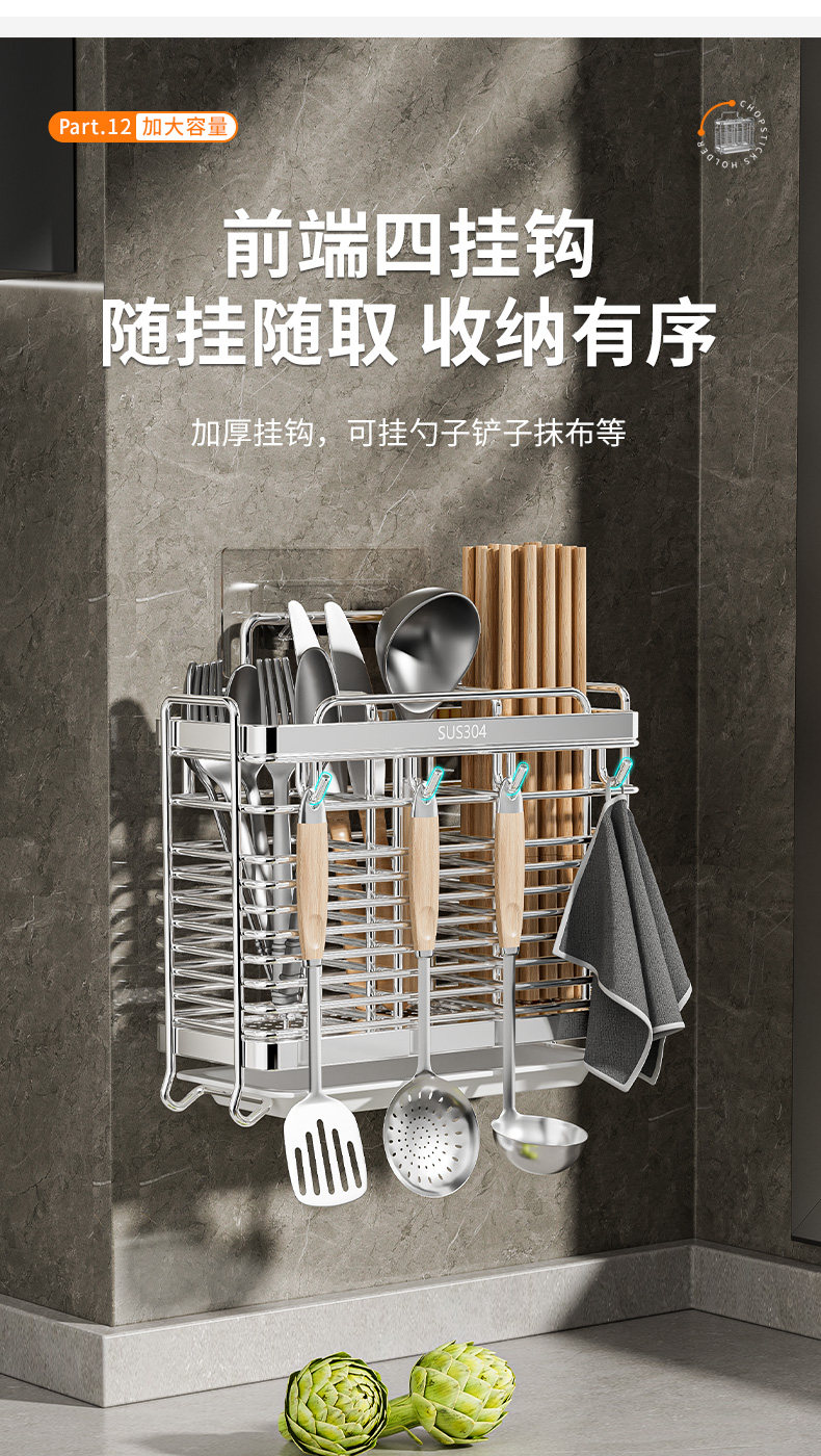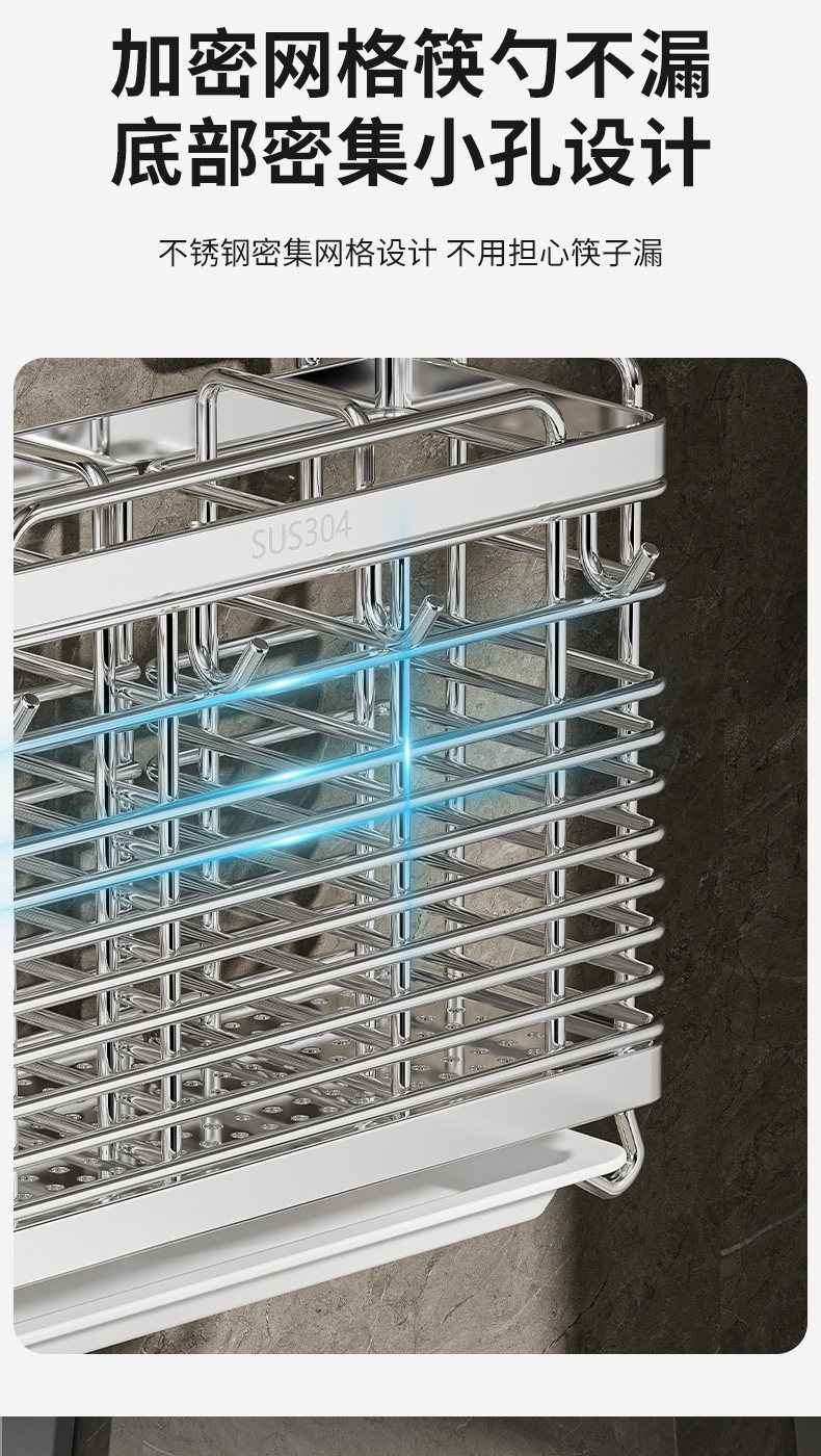304 Stainless Steel Chopstick Holder Wall-Mounted Storage Box Chopstick Basket Kitchen Chopstick Cage Household Spoon Storage Rack