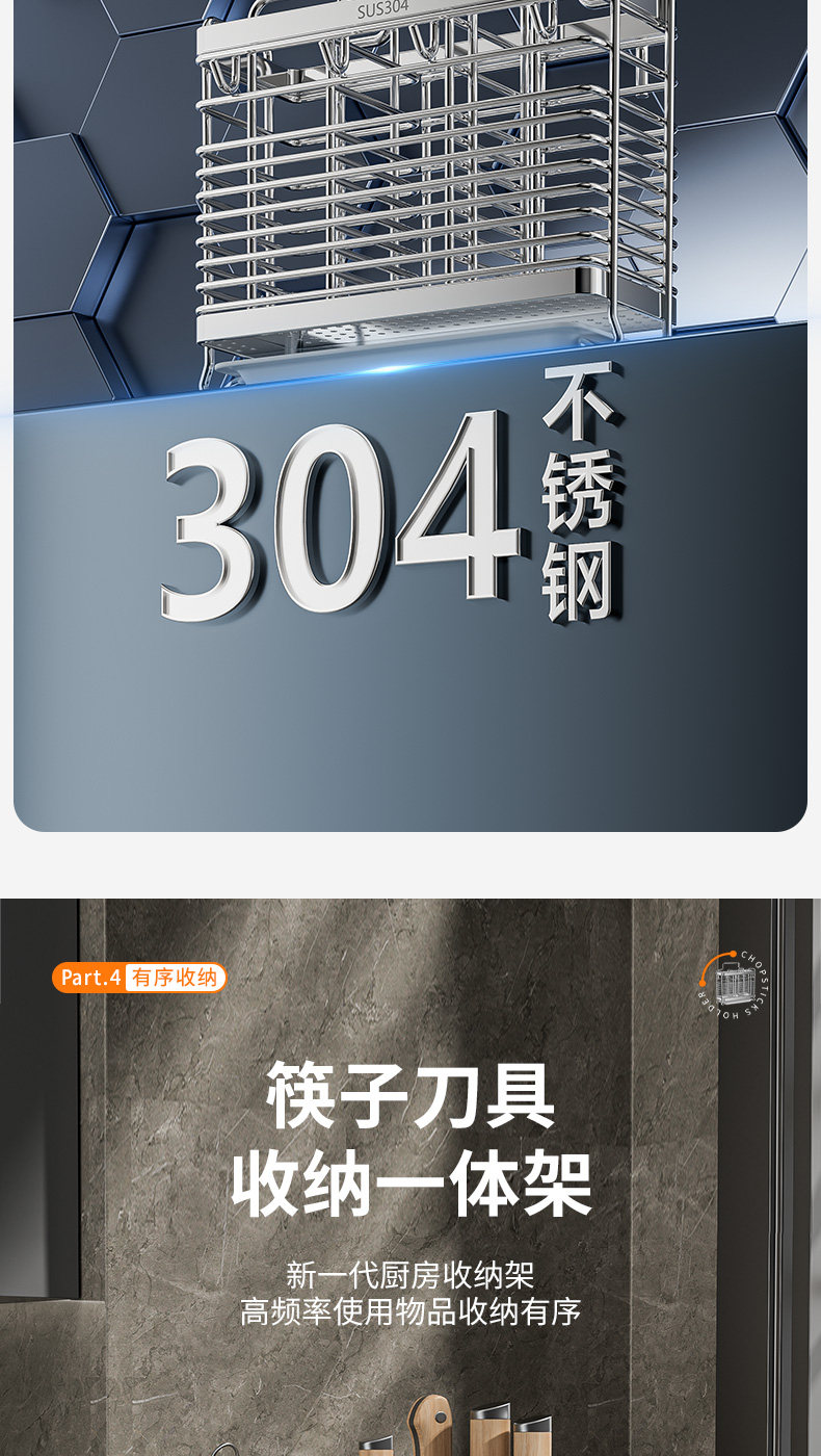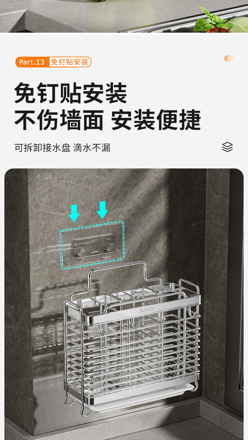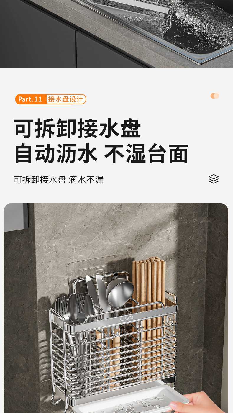 304 Stainless Steel Chopstick Holder Wall-Mounted Storage Box Chopstick Basket Kitchen Chopstick Cage Household Spoon Storage Rack