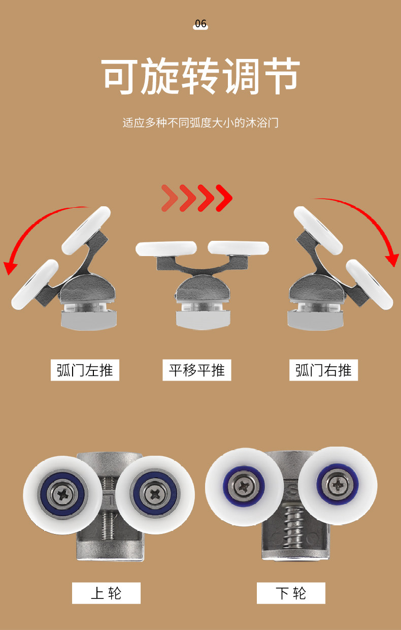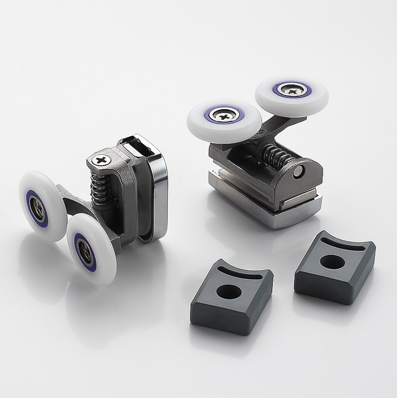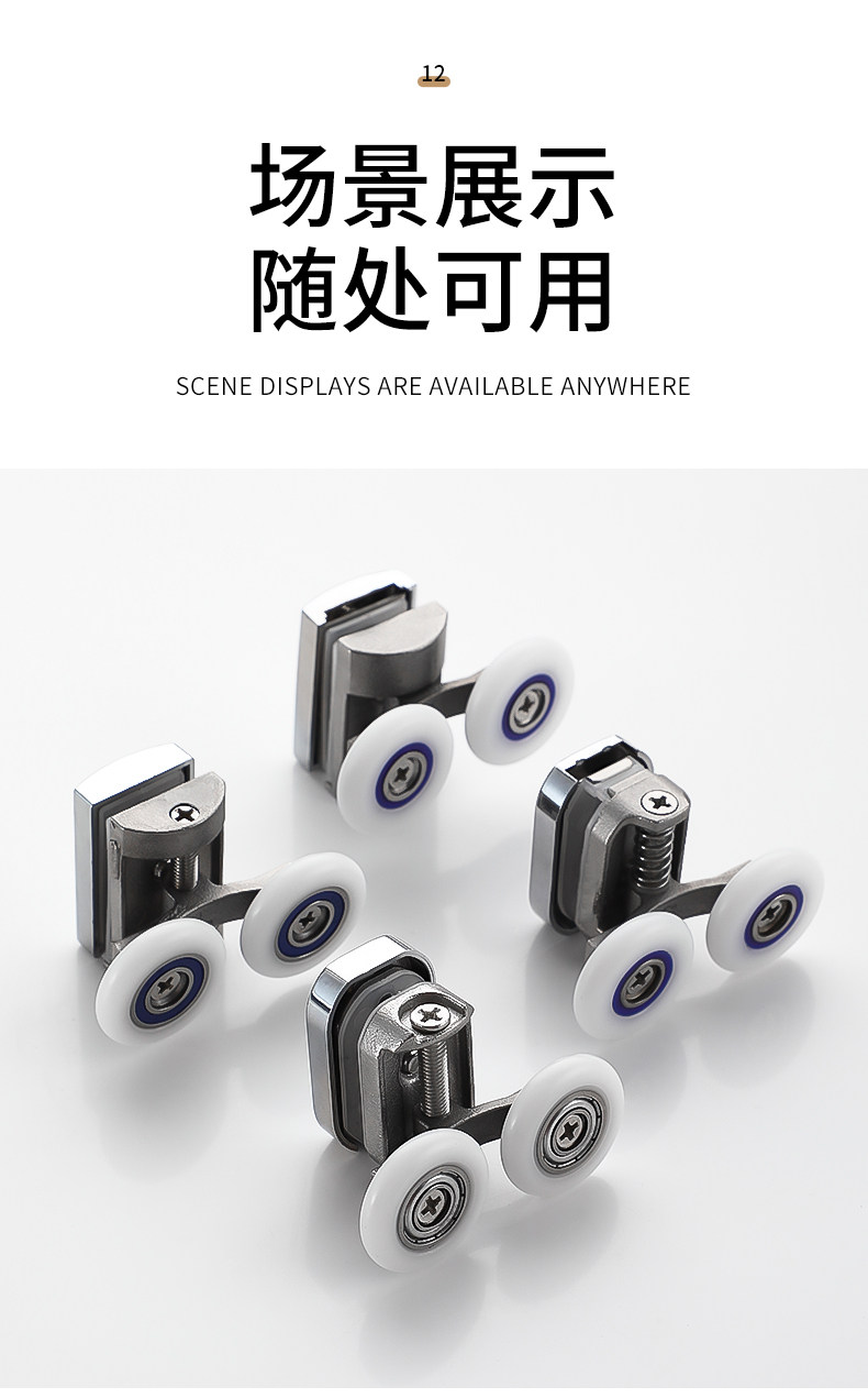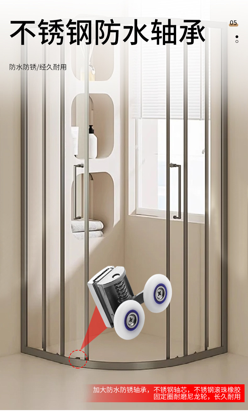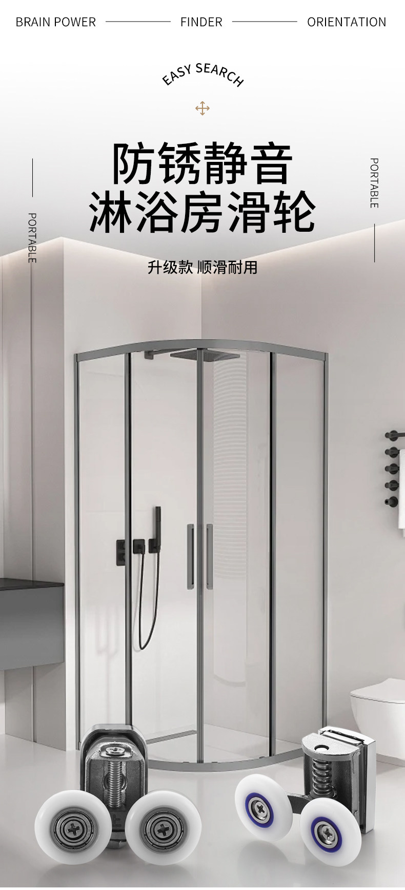 Shower Room Pulley, Old-Fashioned Hanging Wheel, Swing Double Wheel, Bathroom Glass Arc Silent Sliding Door Roller Accessories, Stainless Steel