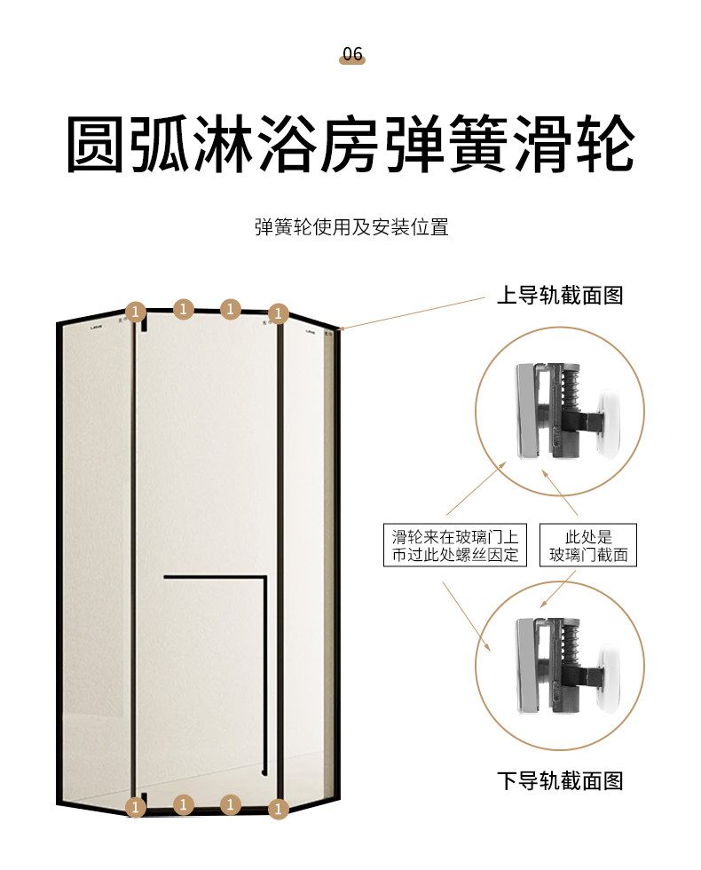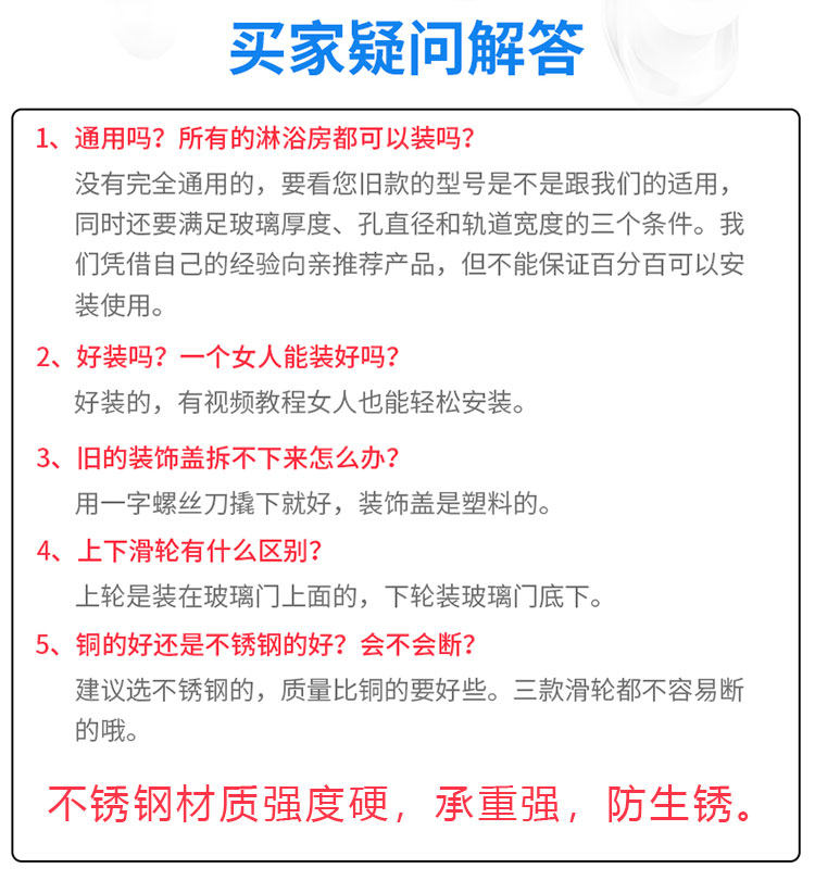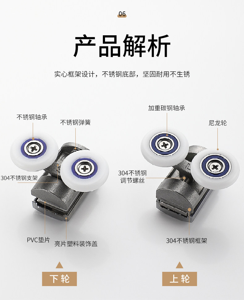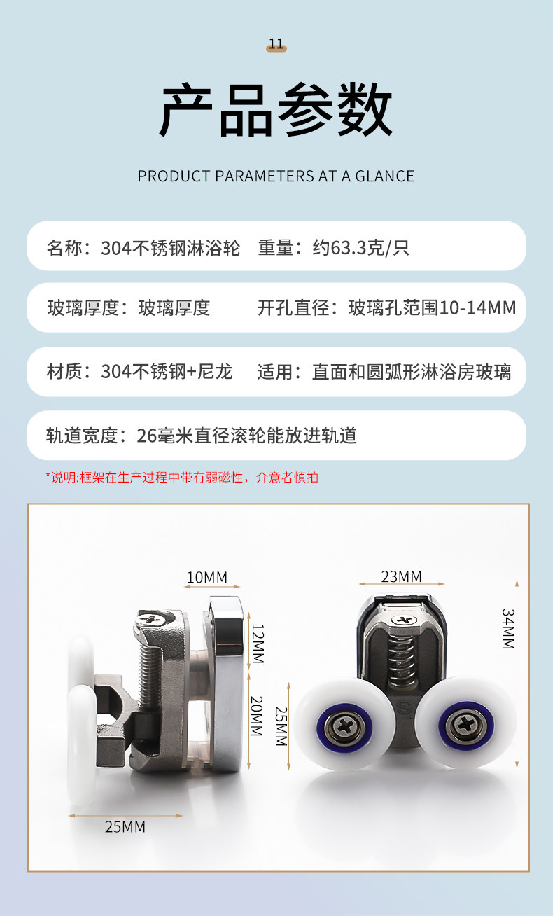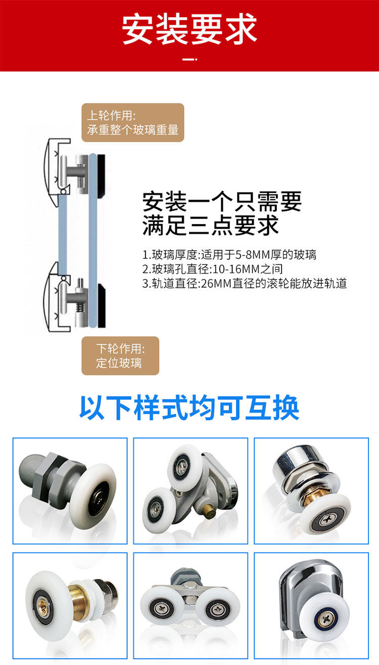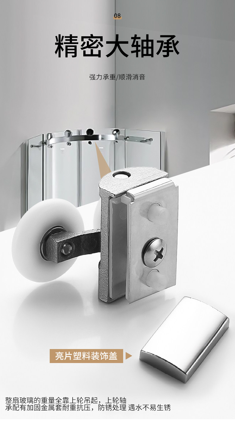 Shower Room Pulley, Old-Fashioned Hanging Wheel, Swing Double Wheel, Bathroom Glass Arc Silent Sliding Door Roller Accessories, Stainless Steel