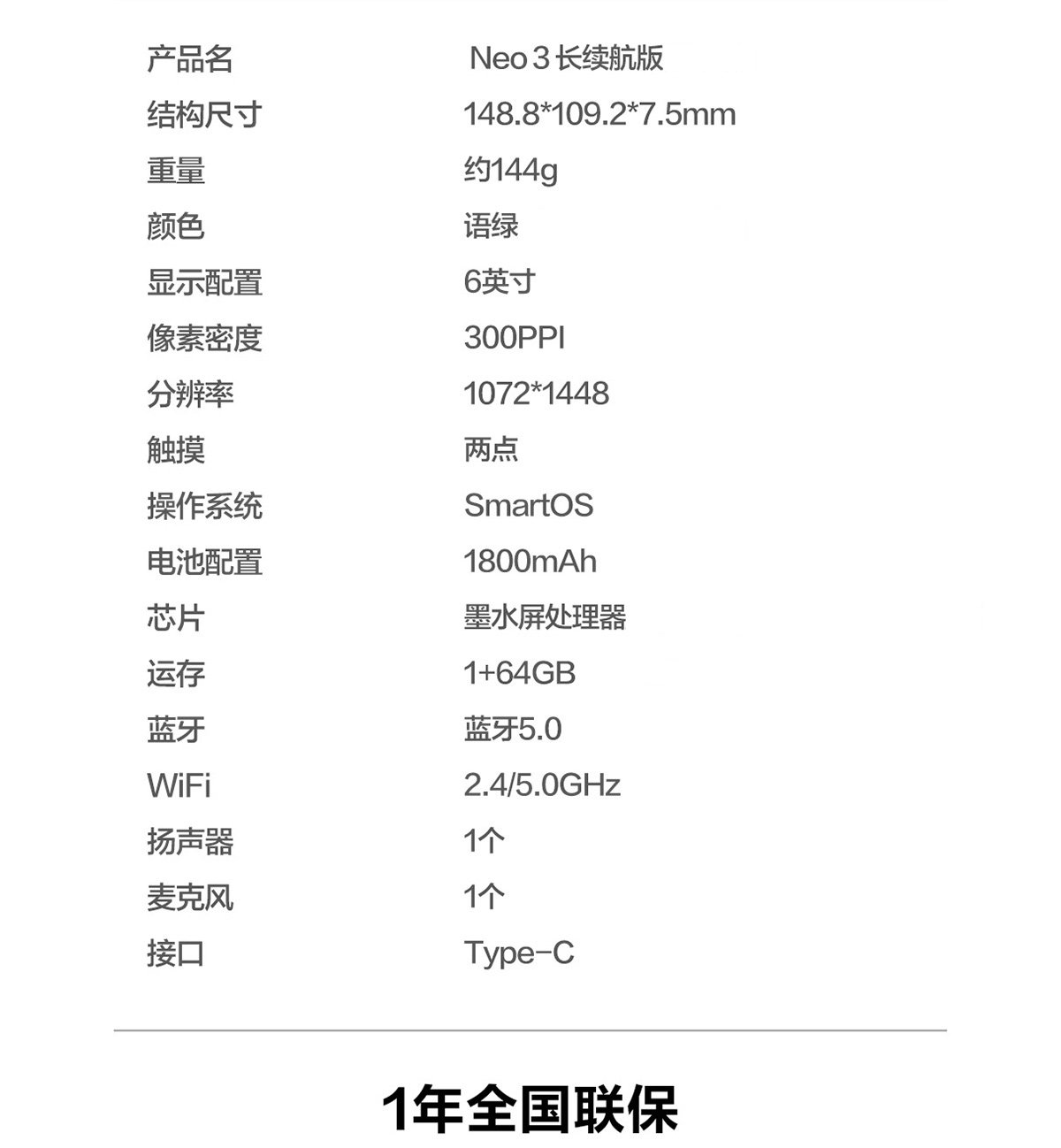 | Color Classification | Neo 3 Long Battery Life Edition - Language Green (64Gb) |