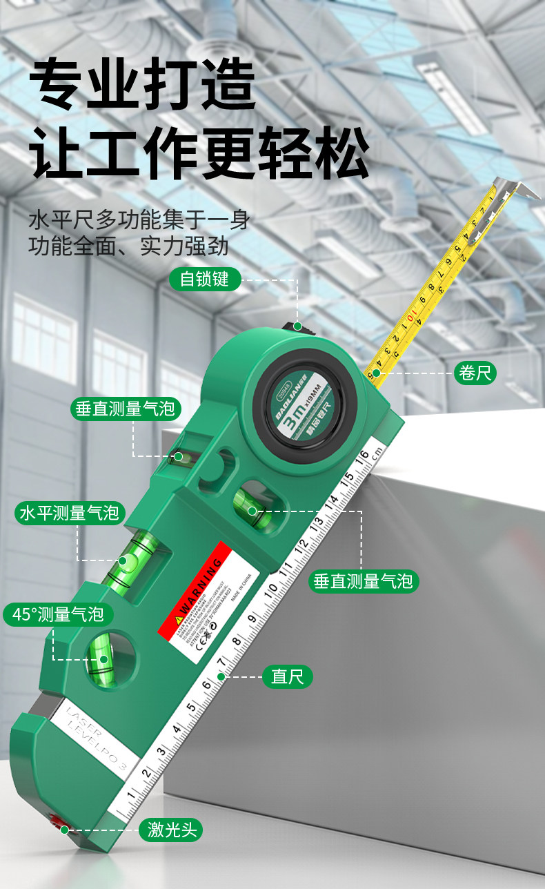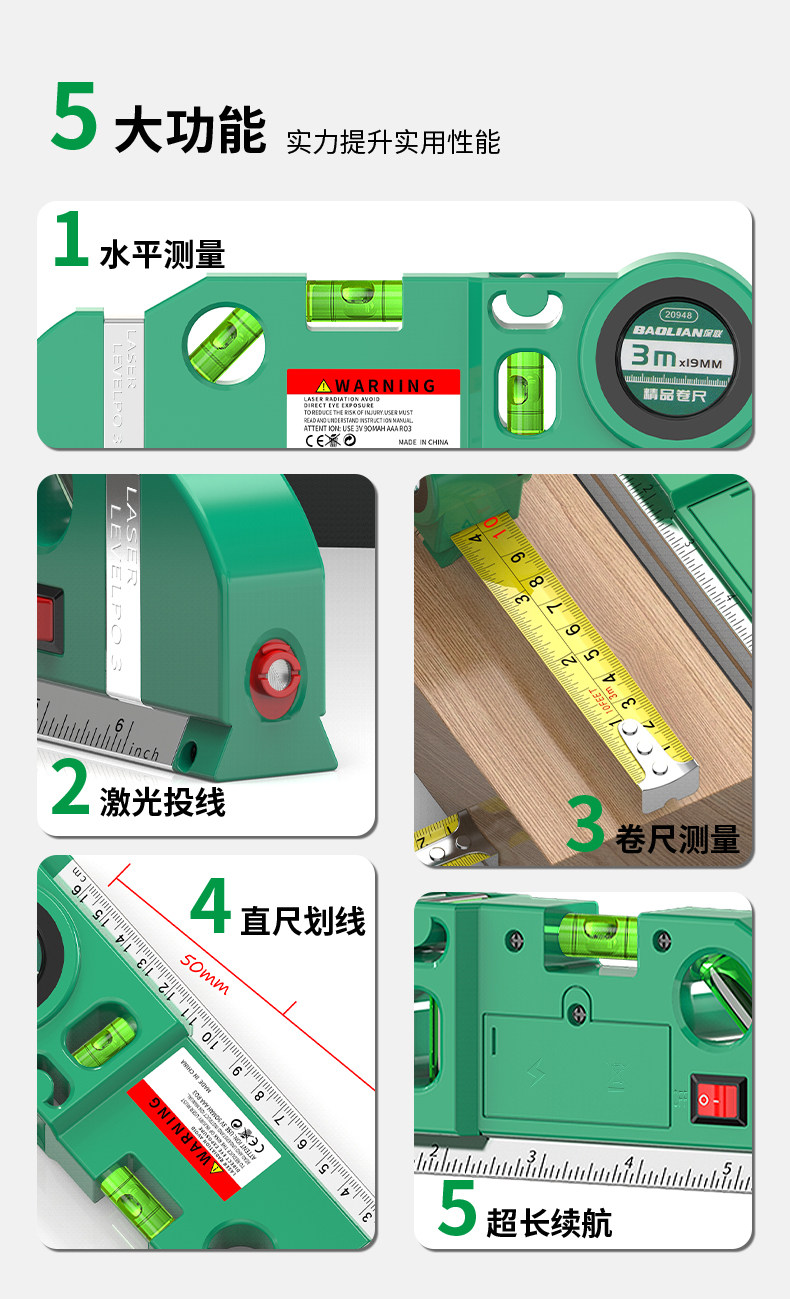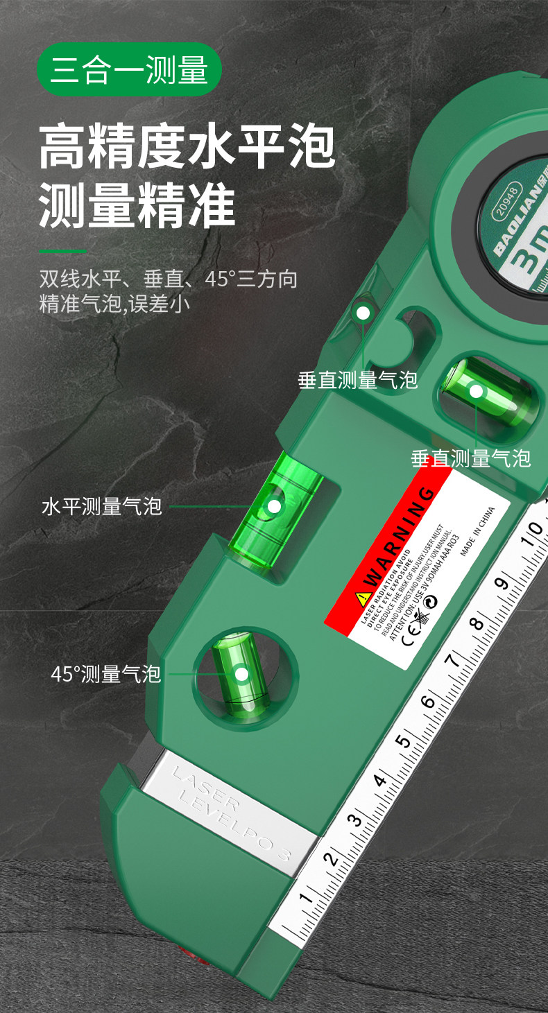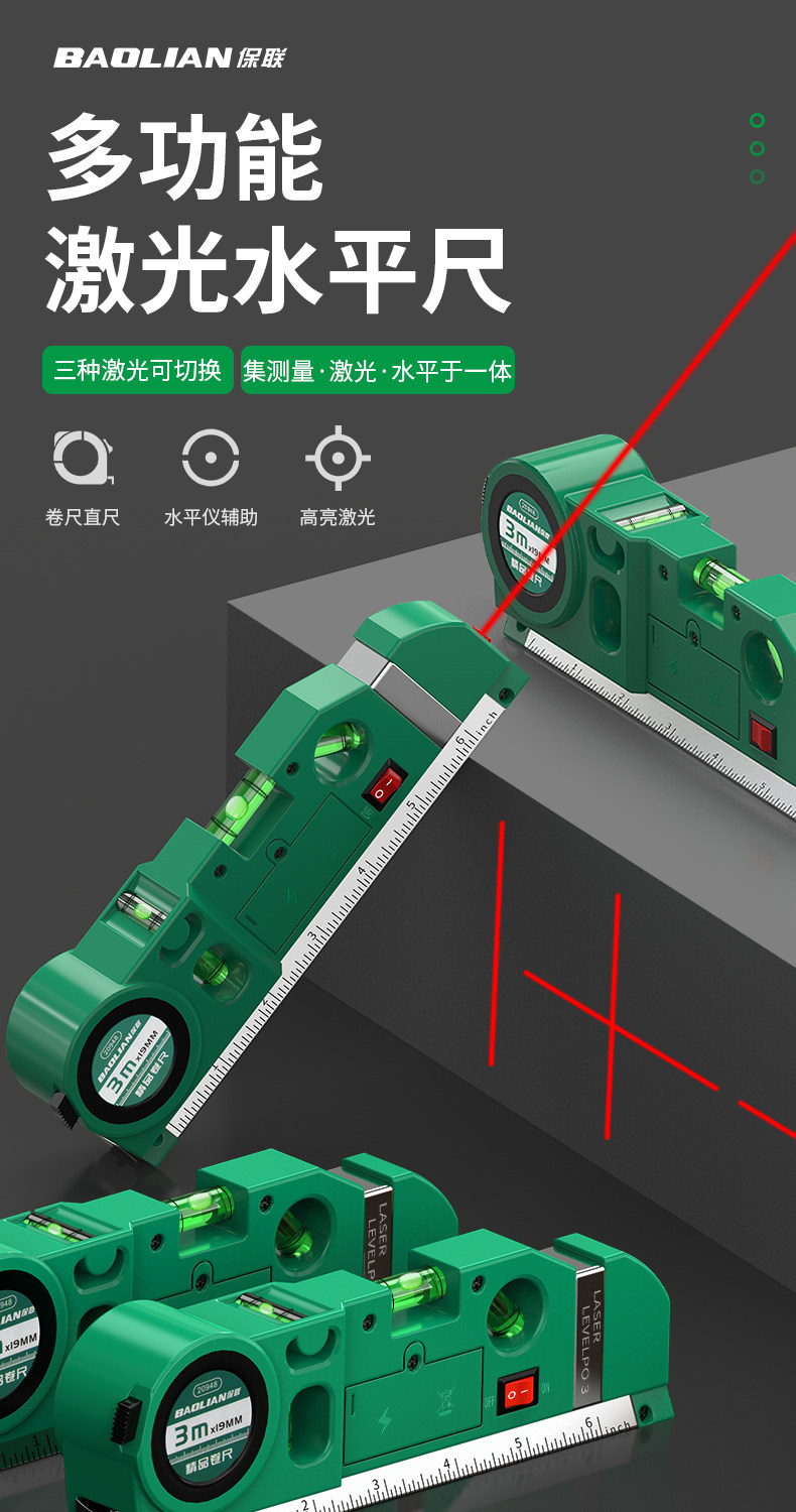 Baolian Laser Level Line Marker Level Bead Tape Measure Ruler Multifunctional Cross-Shaped Portable Line Projector