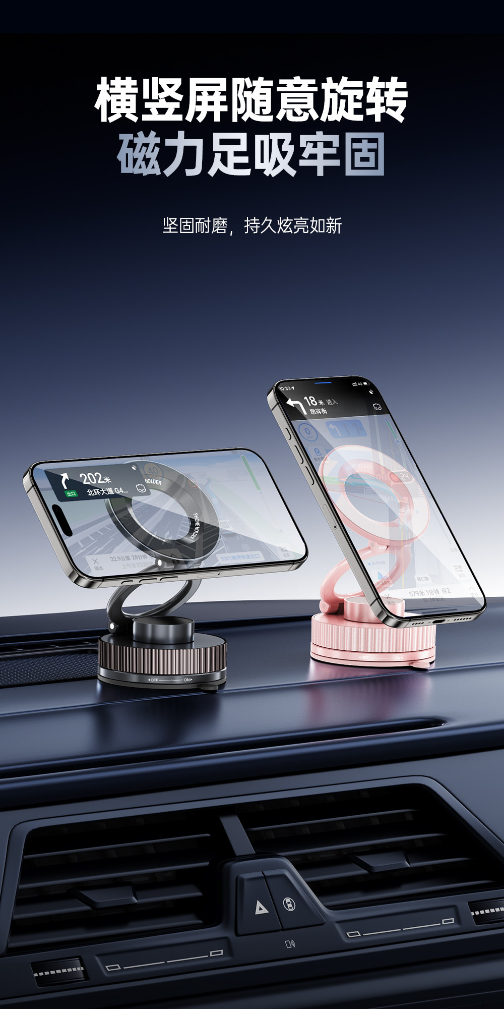 | Color Classification | Classic Black [720 Degree Rotation and FoldingâVacuum Adsorption Super Strong Magnetic SuctionâStable and Does Not Damage the CarâCan'T Shake It Offâ0 Chargingâ0 Residual Glue],Sakura Pink [720 Degree Rotating & Folding]âVacuum Adsorption Super Strong Magnetic SuctionâStable and Does Not Damage the CarâCan'T Shake It Offâ0 Chargingâ0 Residual Glue] |