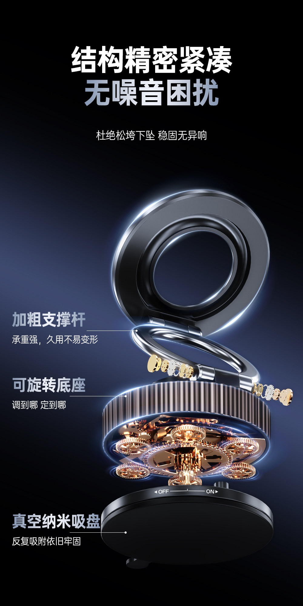 New Vacuum Suction Cup Mobile Phone Desktop Stand 360-Degree Foldable Telescopic Rotating Magnetic Car Navigation Holder