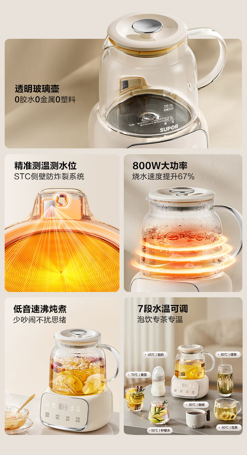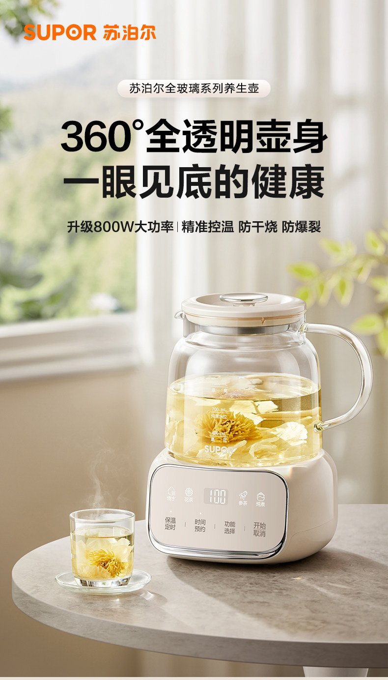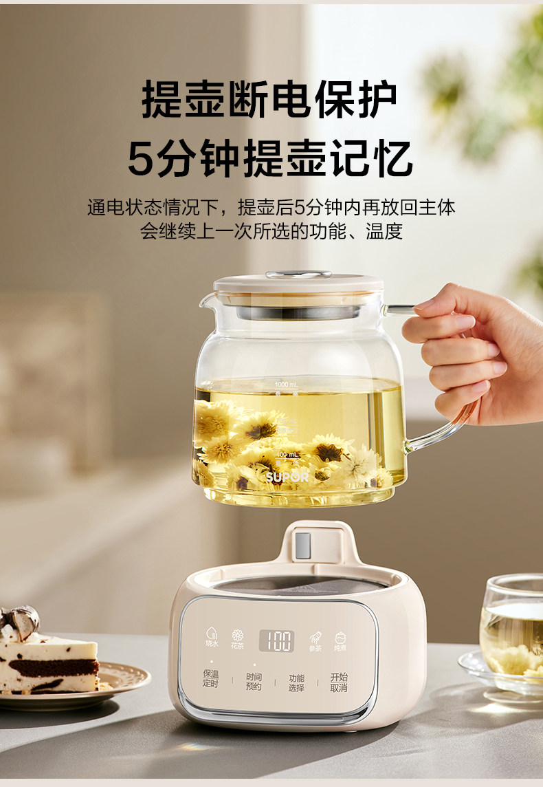 Supor Health Pot Stew All-In-One Office Home Multi-Functional All-Glass Water Boiling Teapot Constant Temperature 25 New Models