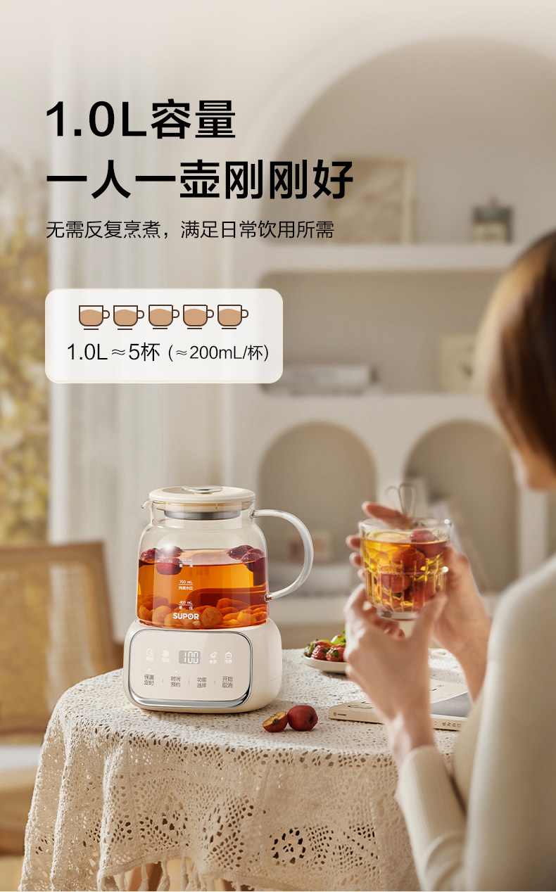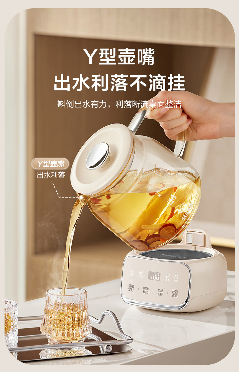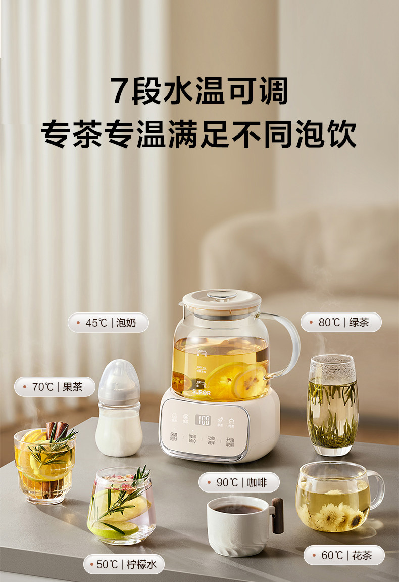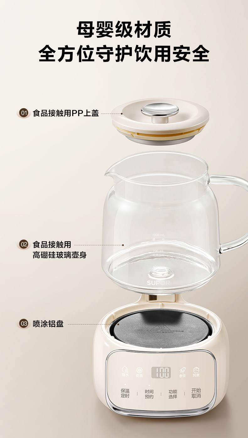 Supor Health Pot Stew All-In-One Office Home Multi-Functional All-Glass Water Boiling Teapot Constant Temperature 25 New Models