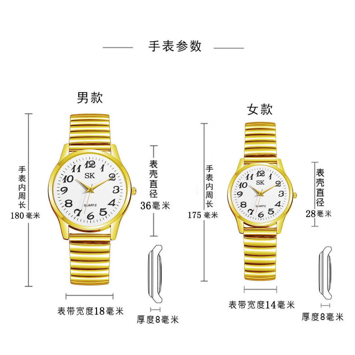 | Color Classification | Men's Golden White Face,Men's Gold Face,Women's Golden White Face,Women's Gold Surface,Pair of Golden White Noodles,Pair of Golden Gold Surfaces |