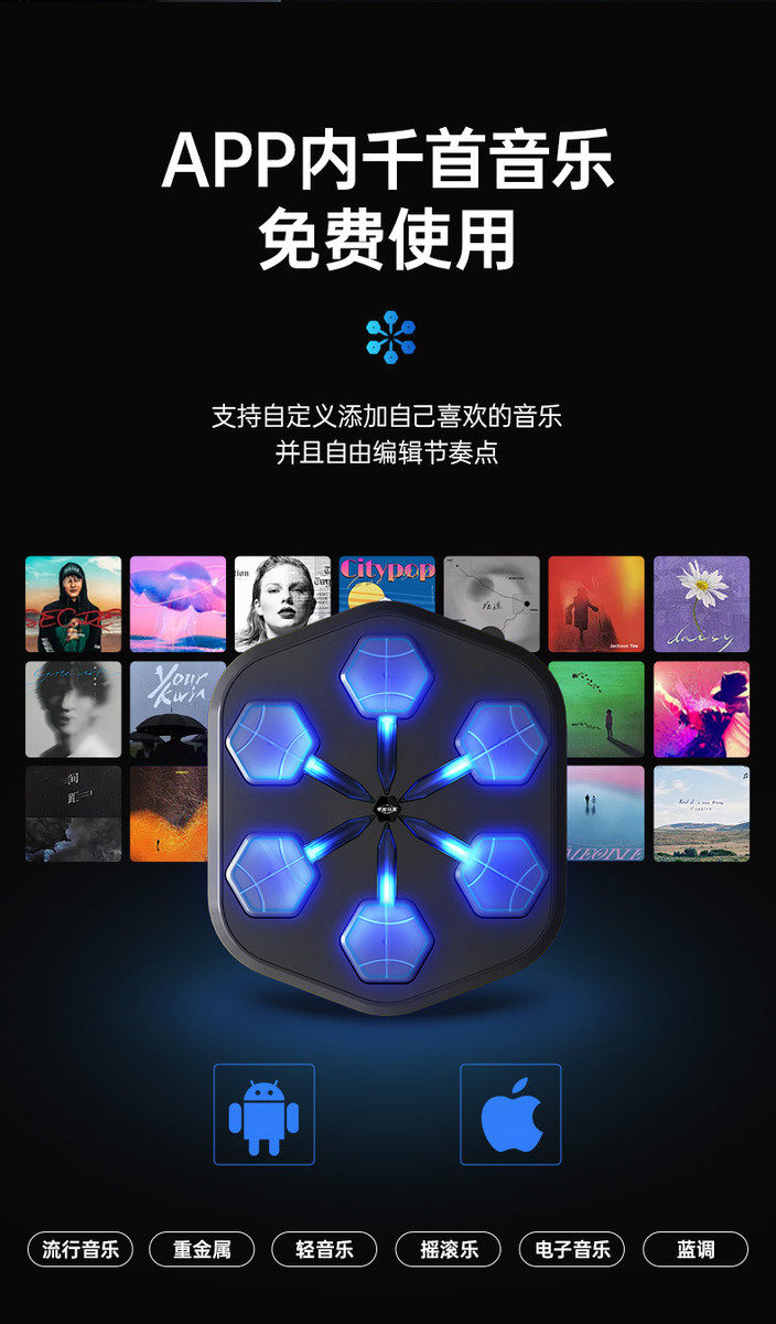 Onepunch Third-Generation Smart Bluetooth Music Boxing Machine, Boxing Wall Target, No-Drill Magic Tape Version