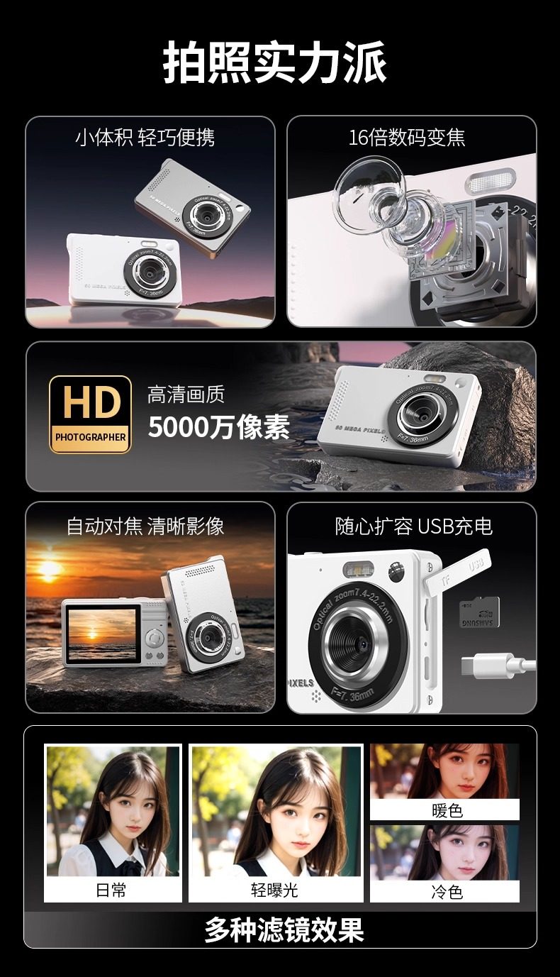 Ccd Digital Camera Student Party Retro Travel Campus High-Definition Entry-Level Girls' Mirrorless Camera Portable Small