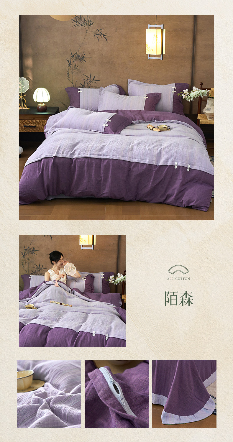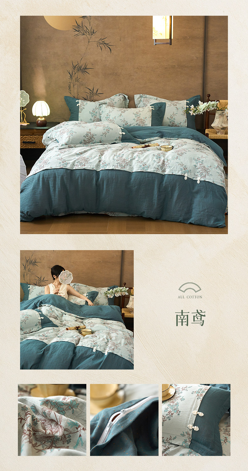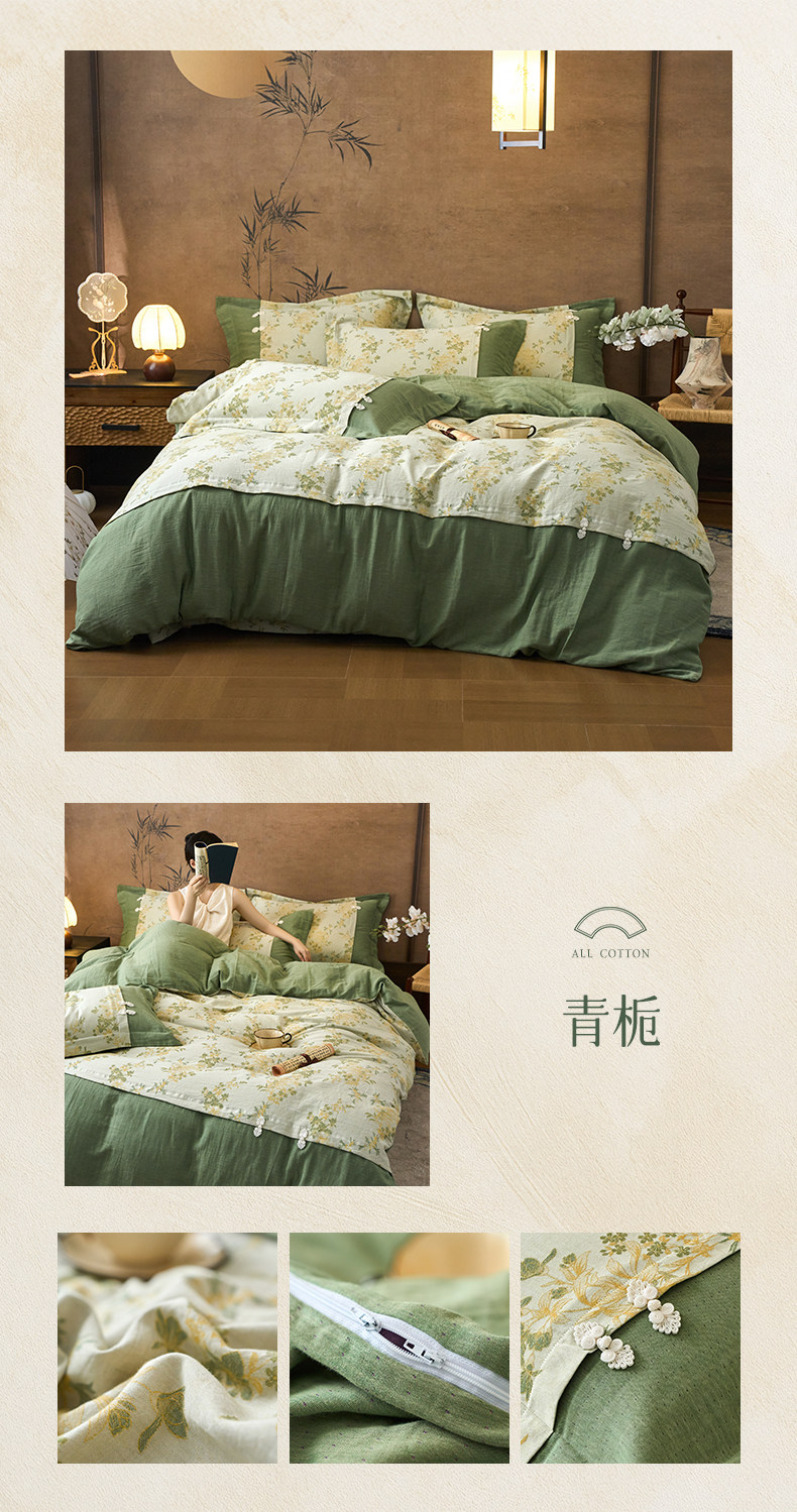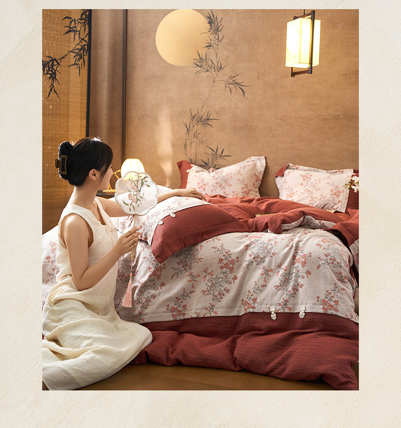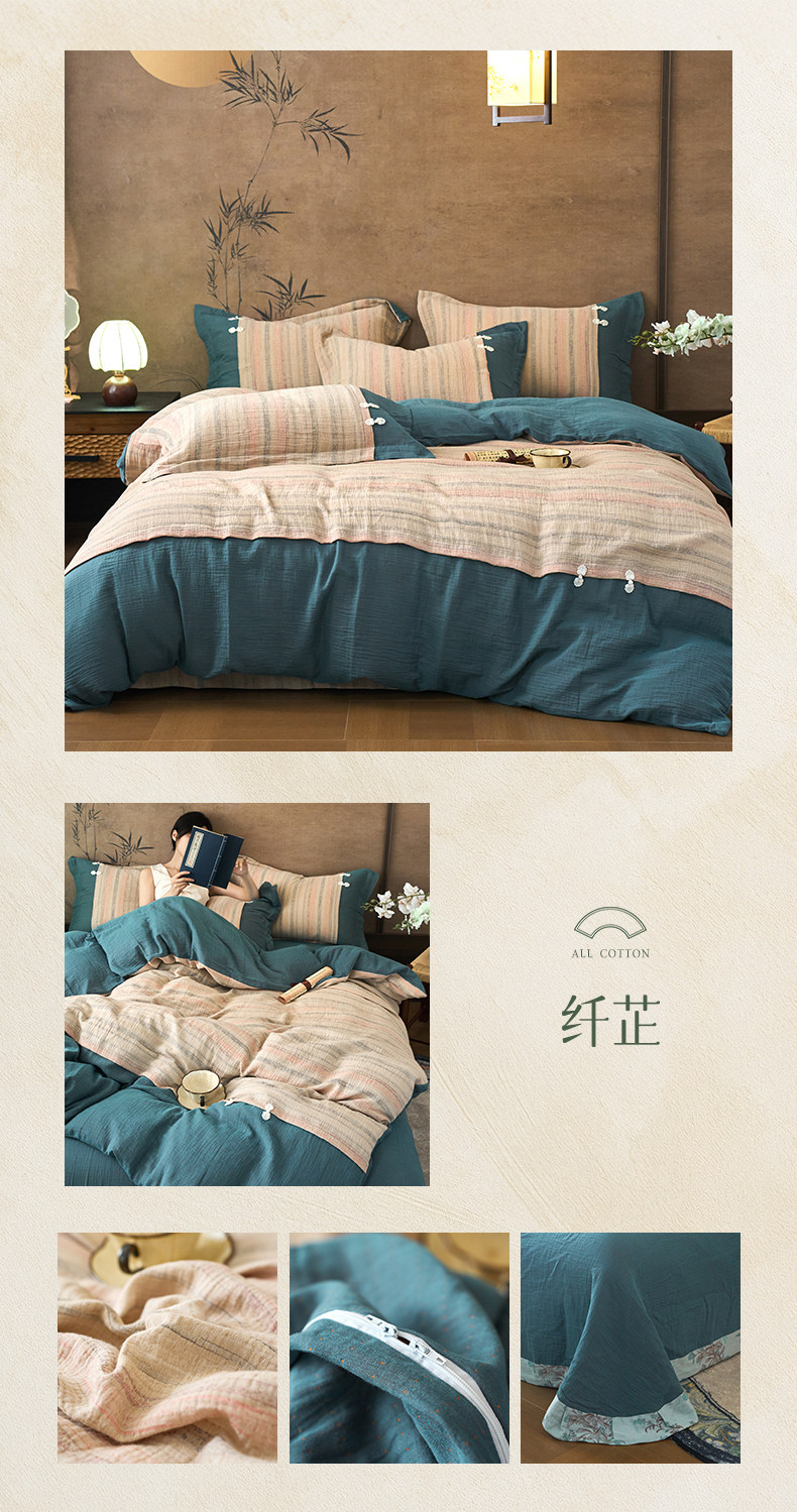 Muji New Chinese-Style All-Cotton Double-Layer Gauze Four-Piece Bedding Set for Bedroom, High-End Luxury A-Class Bed Sheet and Duvet Cover