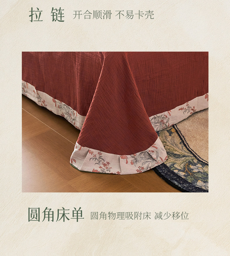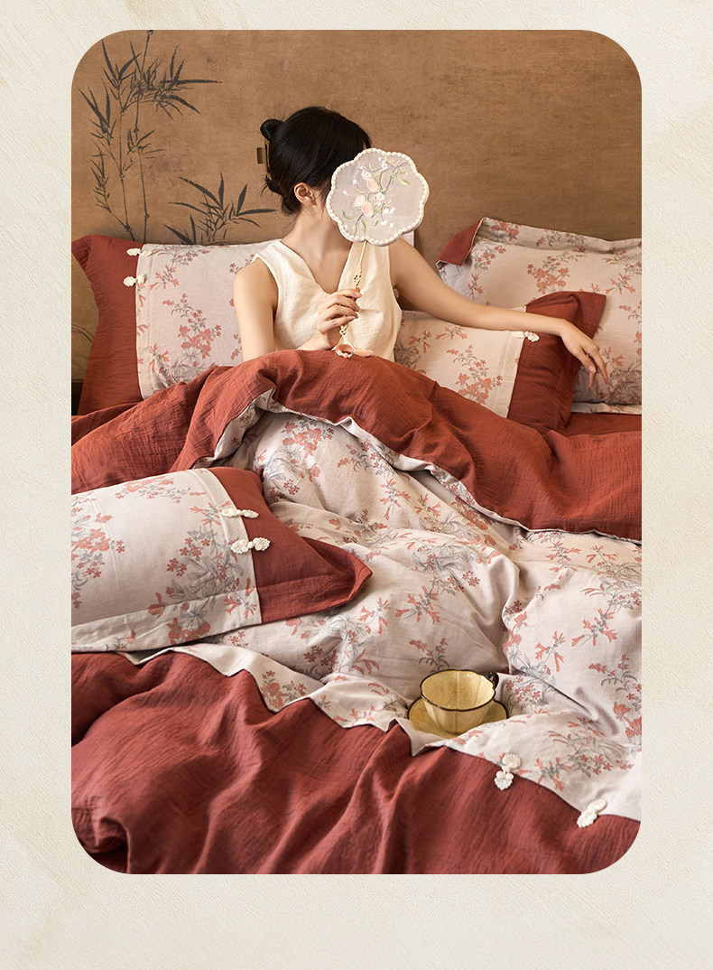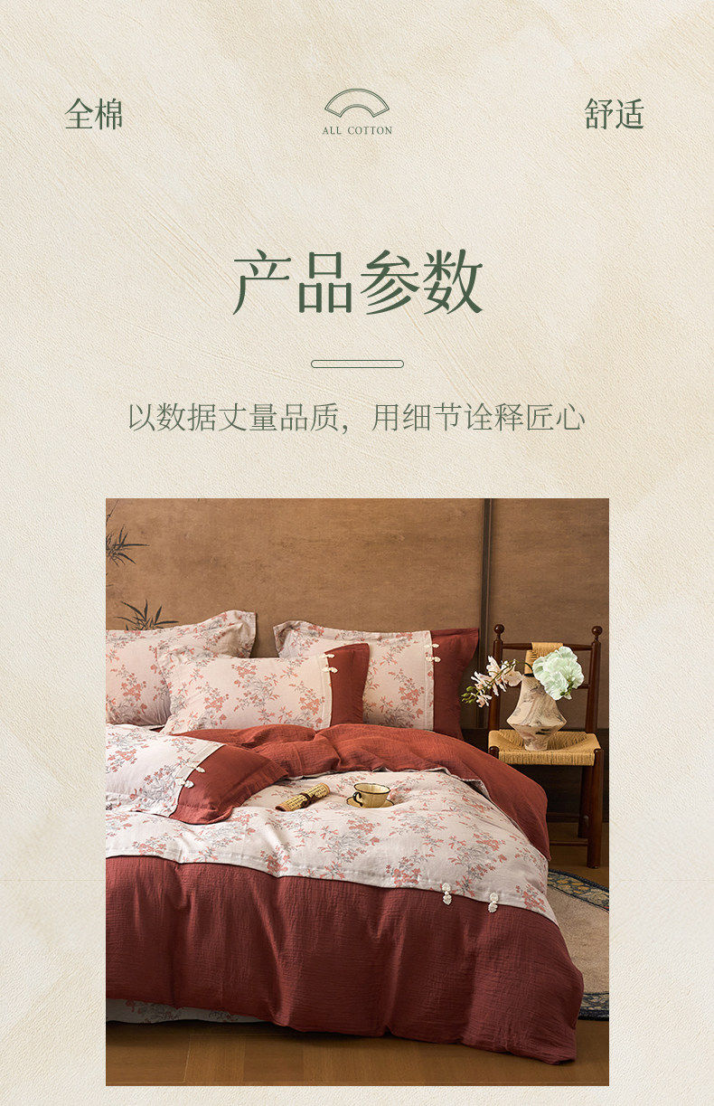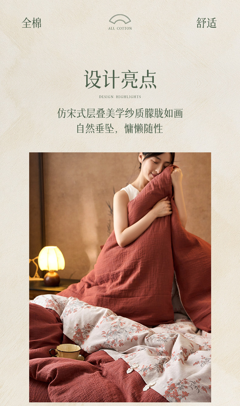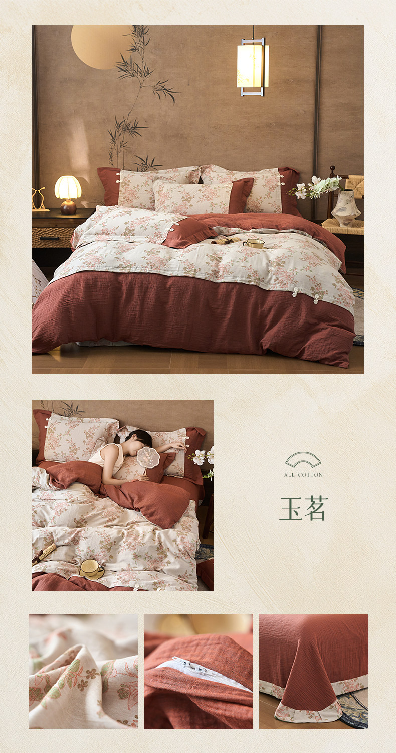 Muji New Chinese-Style All-Cotton Double-Layer Gauze Four-Piece Bedding Set for Bedroom, High-End Luxury A-Class Bed Sheet and Duvet Cover