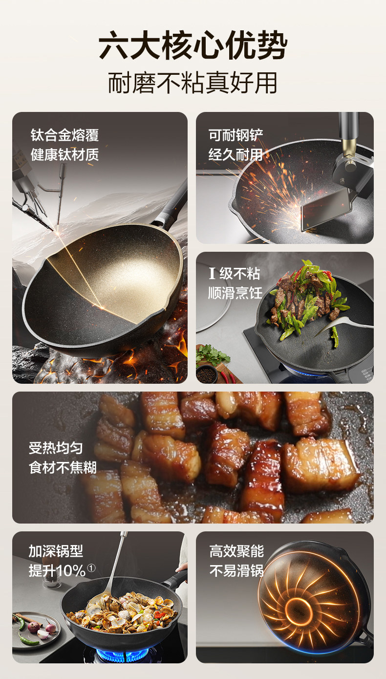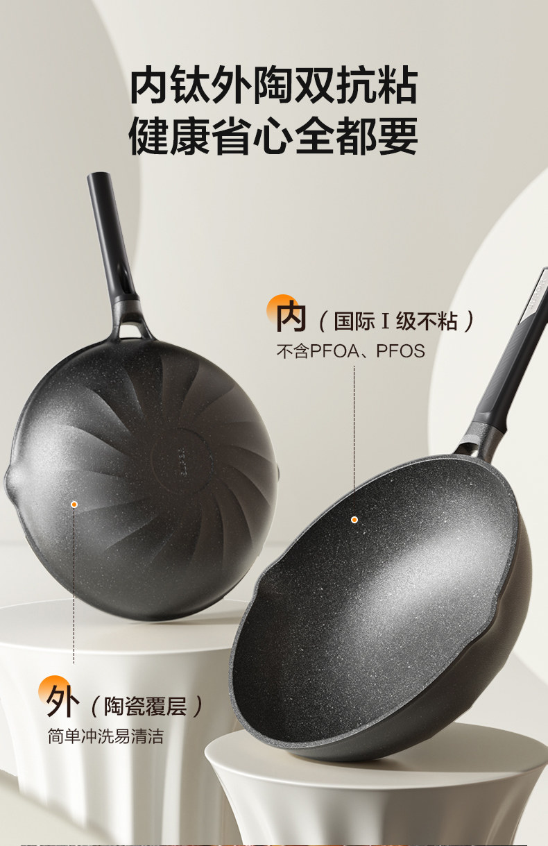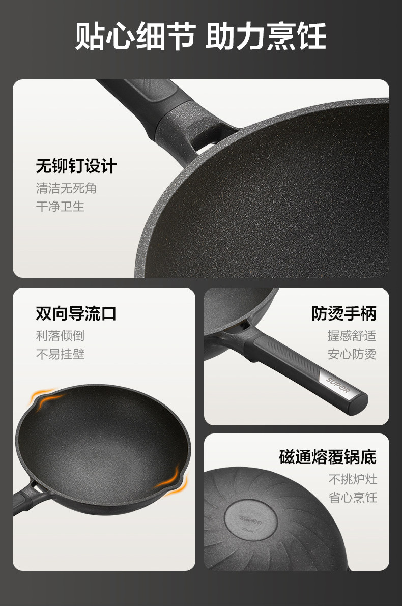 Supor Frying Pan with Titanium Coating, Scratch-Resistant, Suitable for Home Use, Ceramic Non-Stick Pan, Compatible with Induction and Gas Stoves