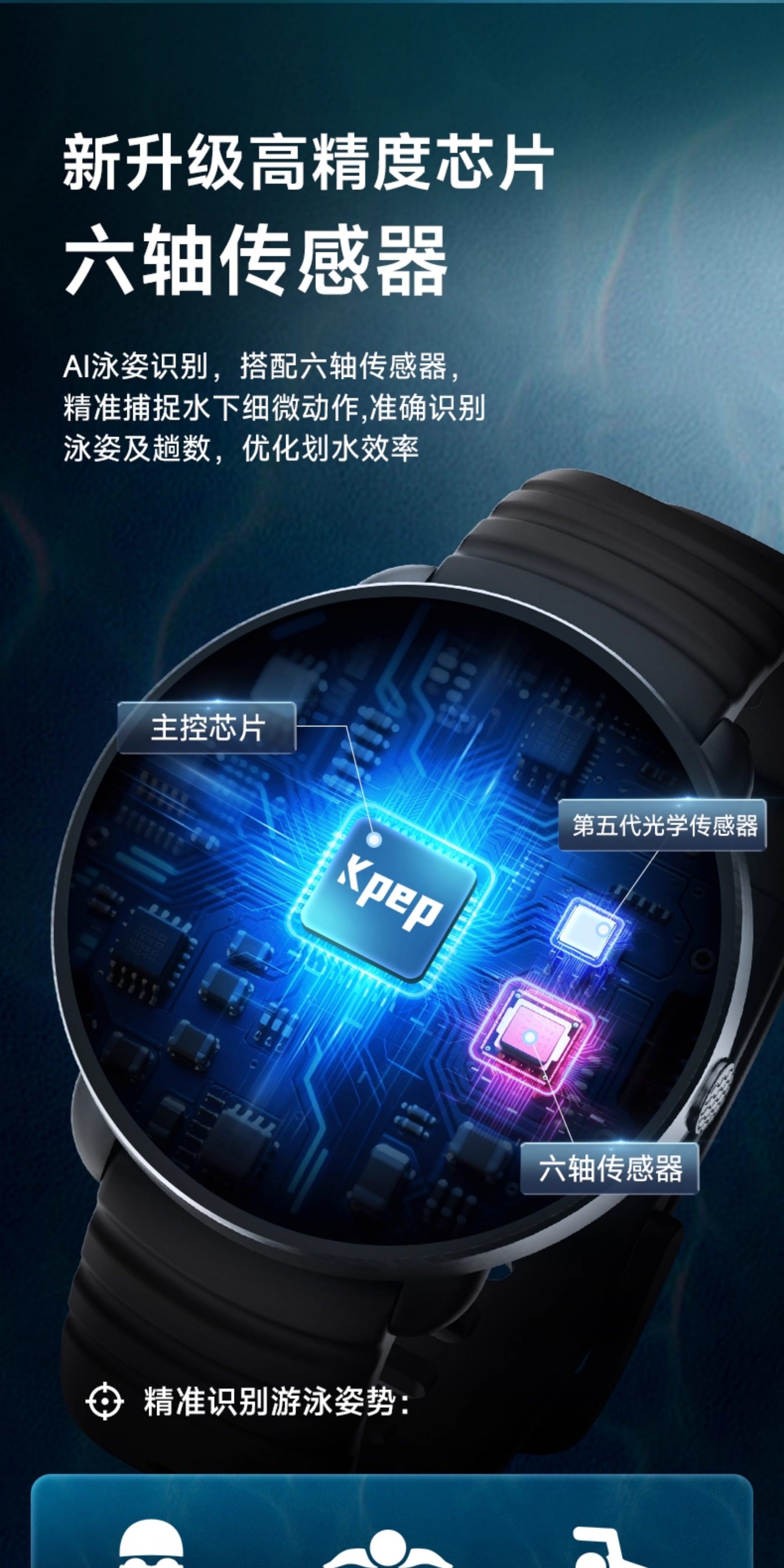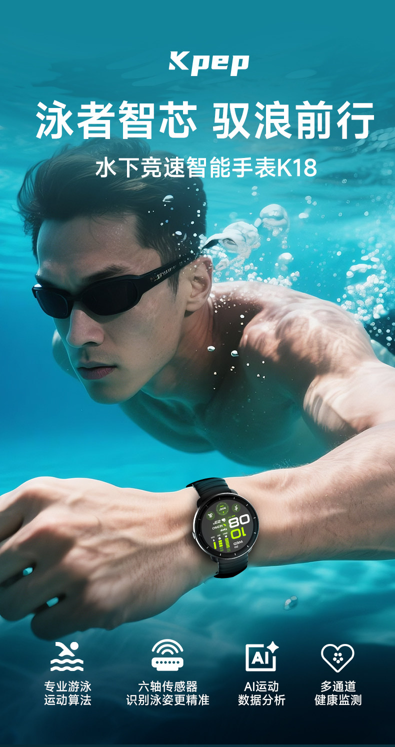 Kpep New Professional Swimming and Badminton Sports Watch, Running, Cycling, Cross-Country Swimming, Alipay Ride Code Smart Bracelet, Gudu Smart Sports Watch