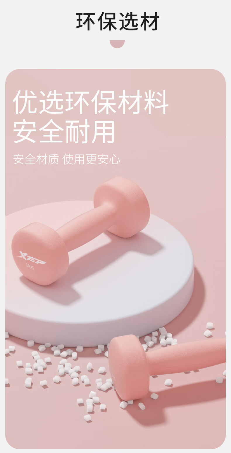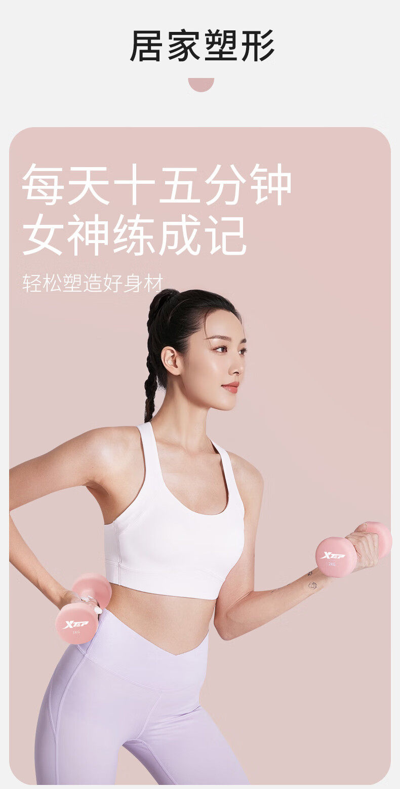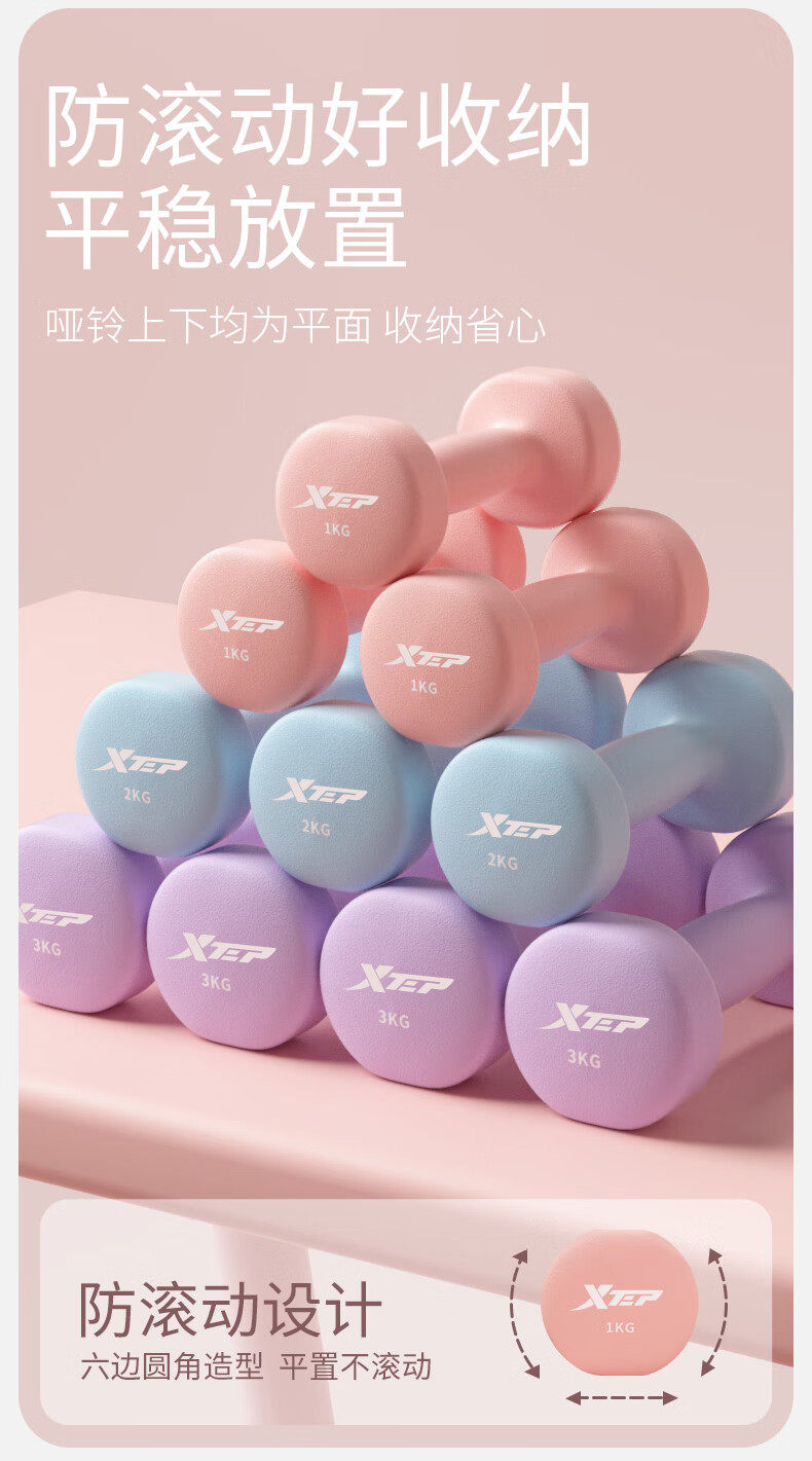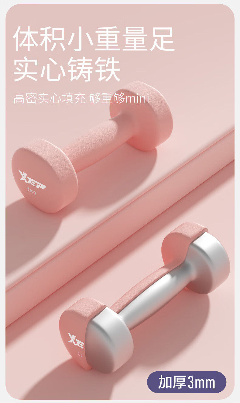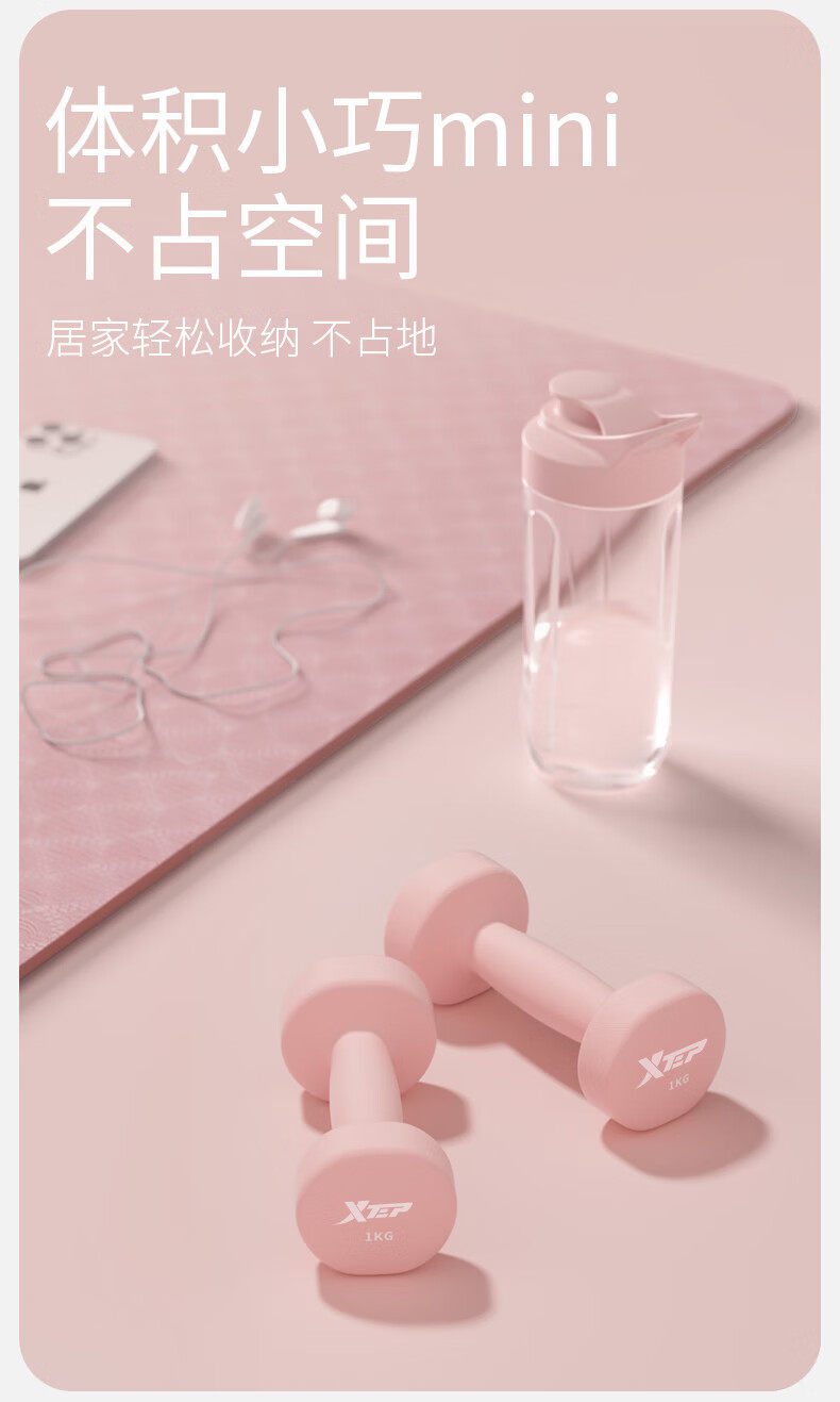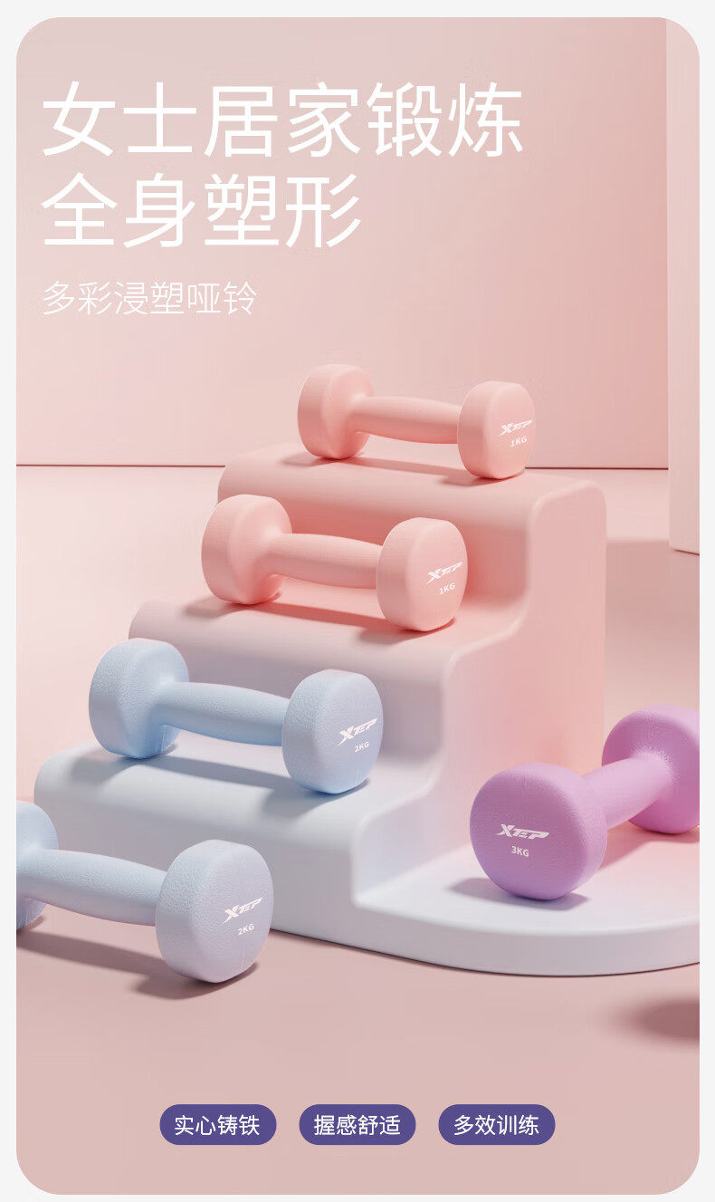 Xtep Dumbbells for Women's Fitness, Home Use, Small Men's Strength Training Equipment, Beginner Arm Muscle Training, 2kg 5kg Pair
