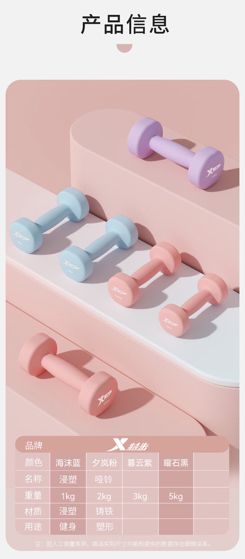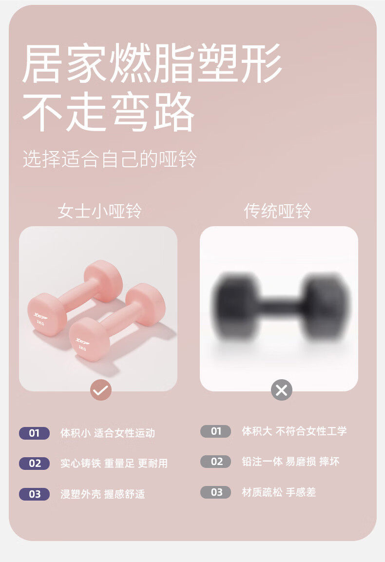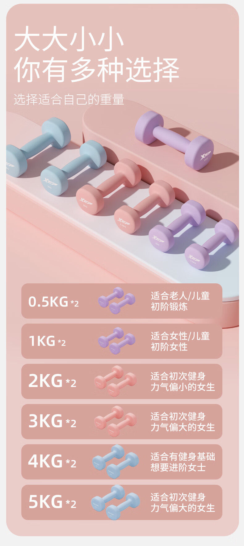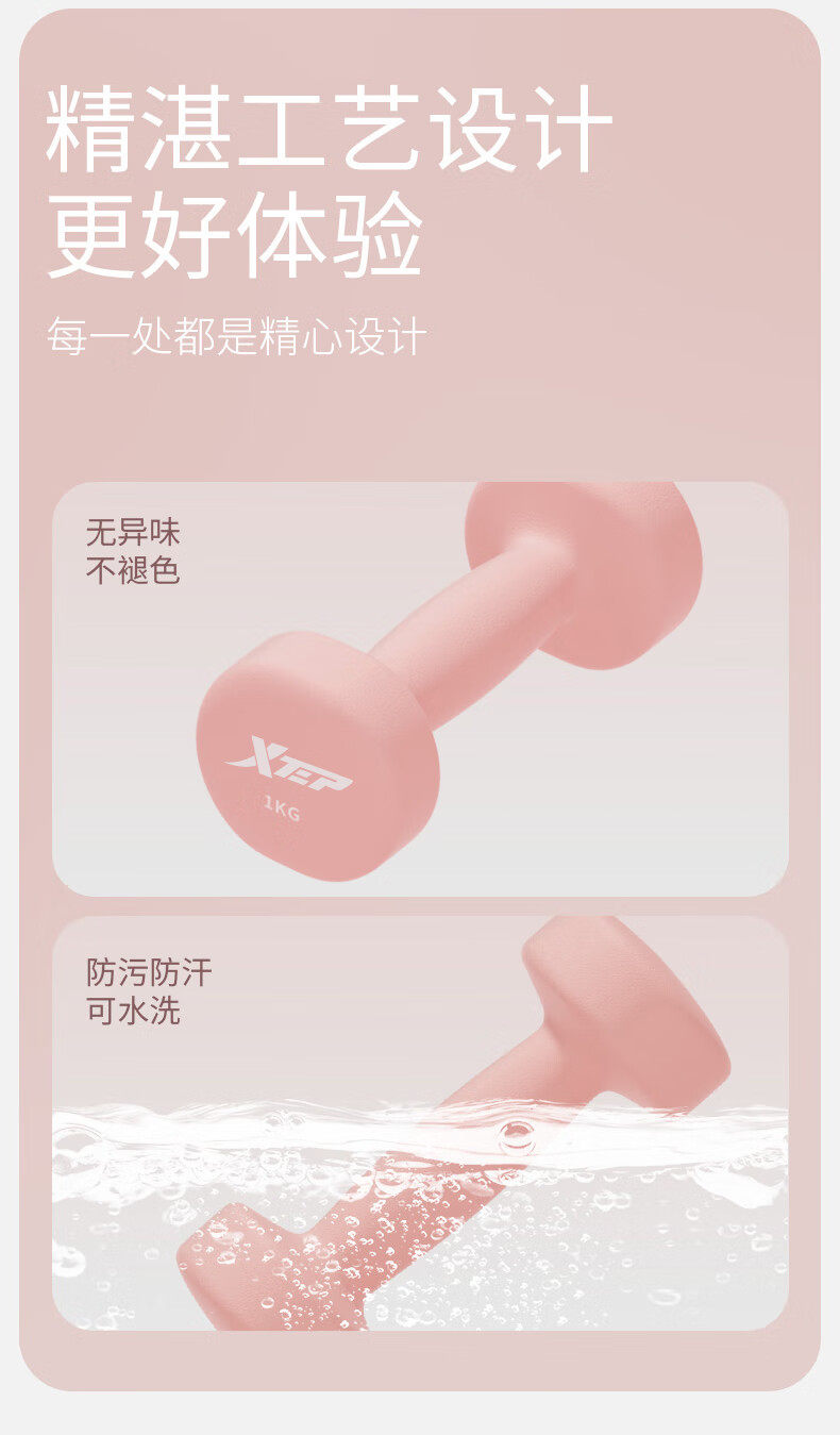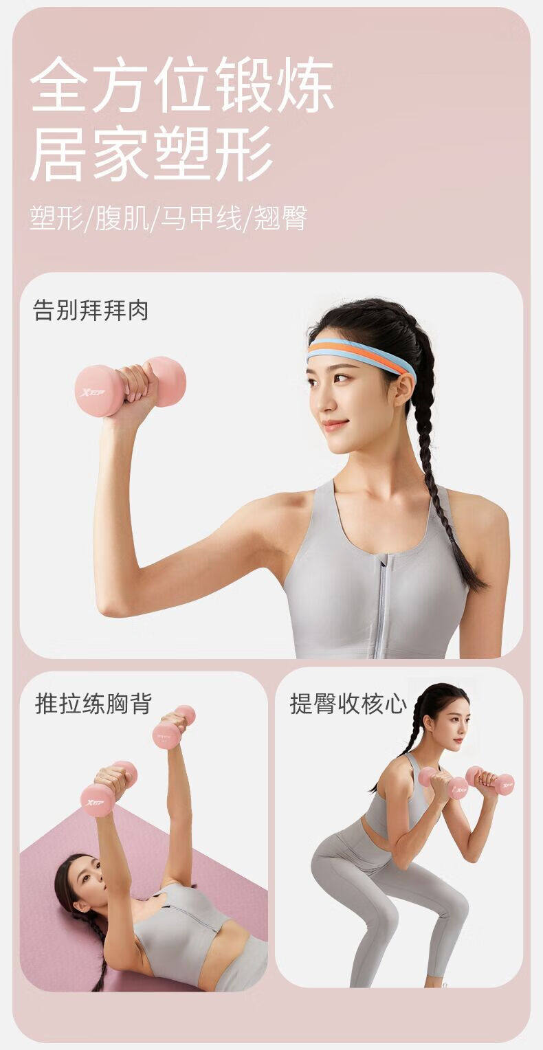 Xtep Dumbbells for Women's Fitness, Home Use, Small Men's Strength Training Equipment, Beginner Arm Muscle Training, 2kg 5kg Pair