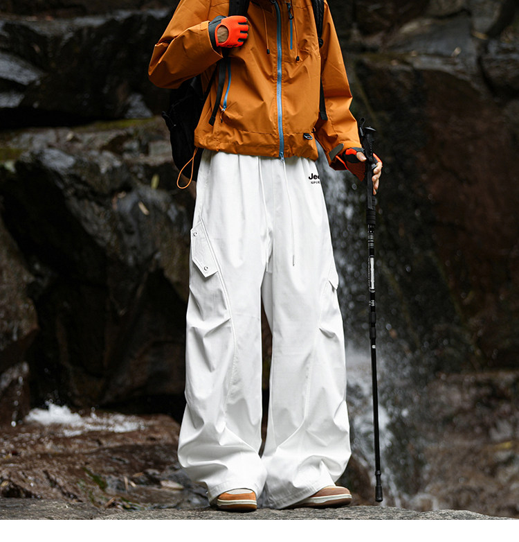Jeep Spirit American-Style Outdoor Hiking Pants for Men and Women, Autumn and Winter Fleece-Lined Paratrooper Pants, Straight-Leg Casual Trousers