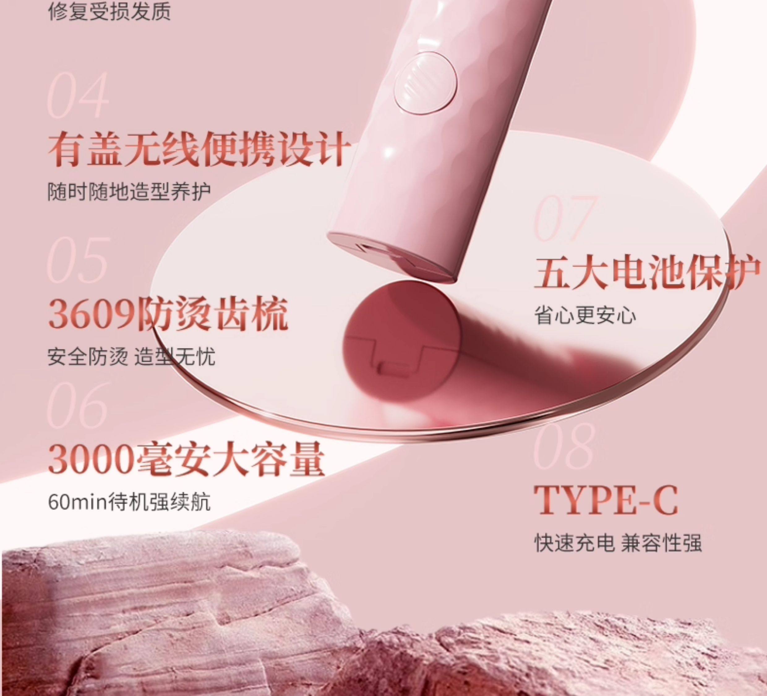 | Function | Anti-Scalding,Constant Temperature Control,Shaping,Essential Oil Hair Care,Mini Portable,Negative Ions,Plasma,Wireless and Portable |