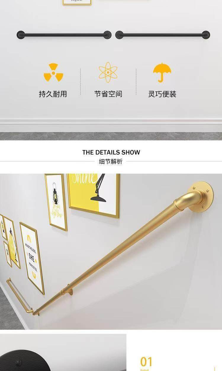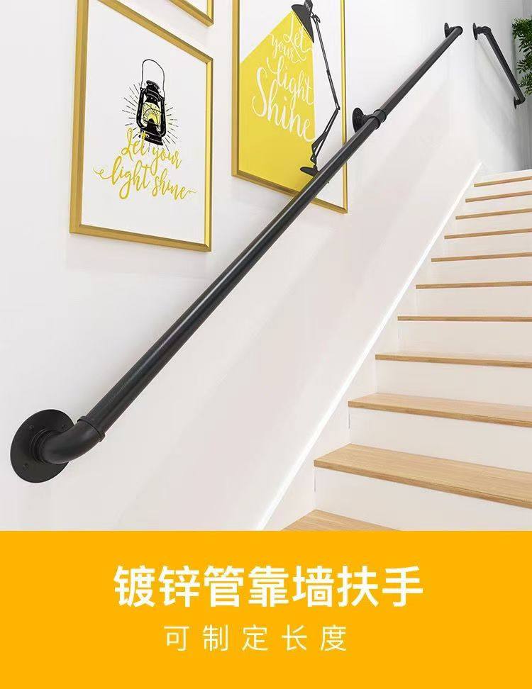 Modern Minimalist Stair Handrail, Home Iron Art Water Pipe Indoor Loft Wall-Mounted Anti-Slip Handrail for Elderly, Corridor Handrail
