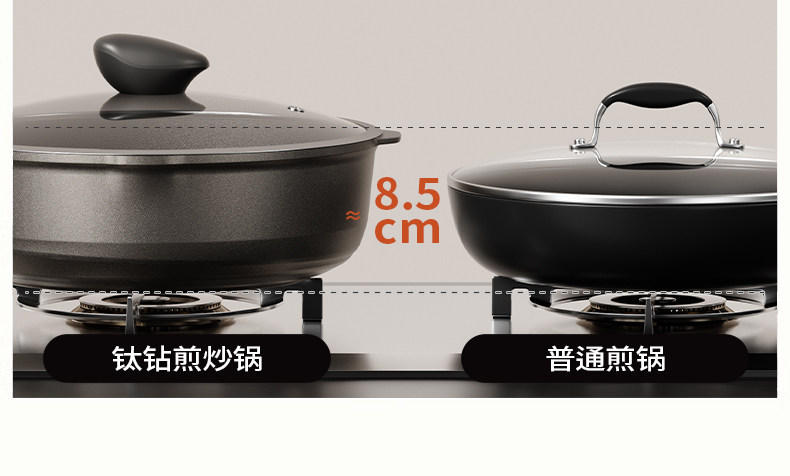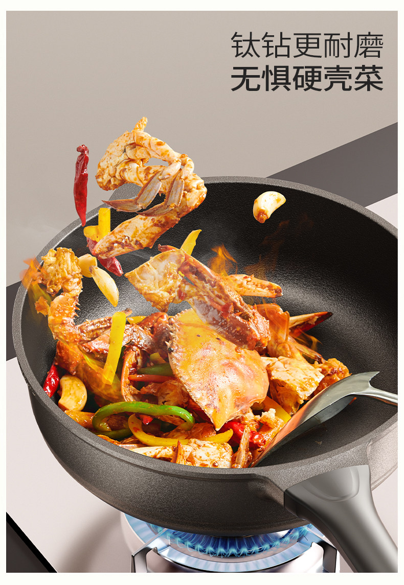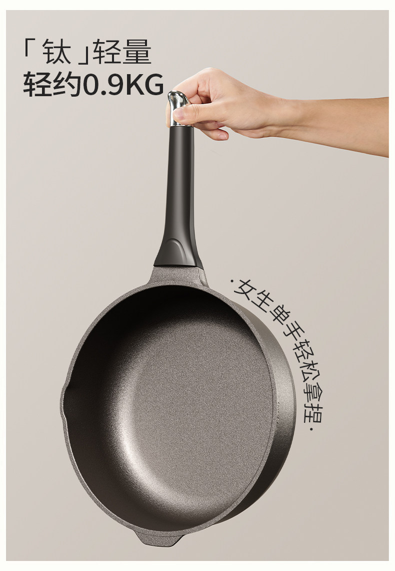 Titanium Frying Pan, Oil-Collecting, Deepened Flat-Bottomed Pan, Non-Stick Pan, Household Wok, Steak Frying Pan, Egg Frying Pan, Suitable for Gas Stoves and Induction Cookers