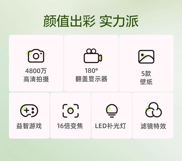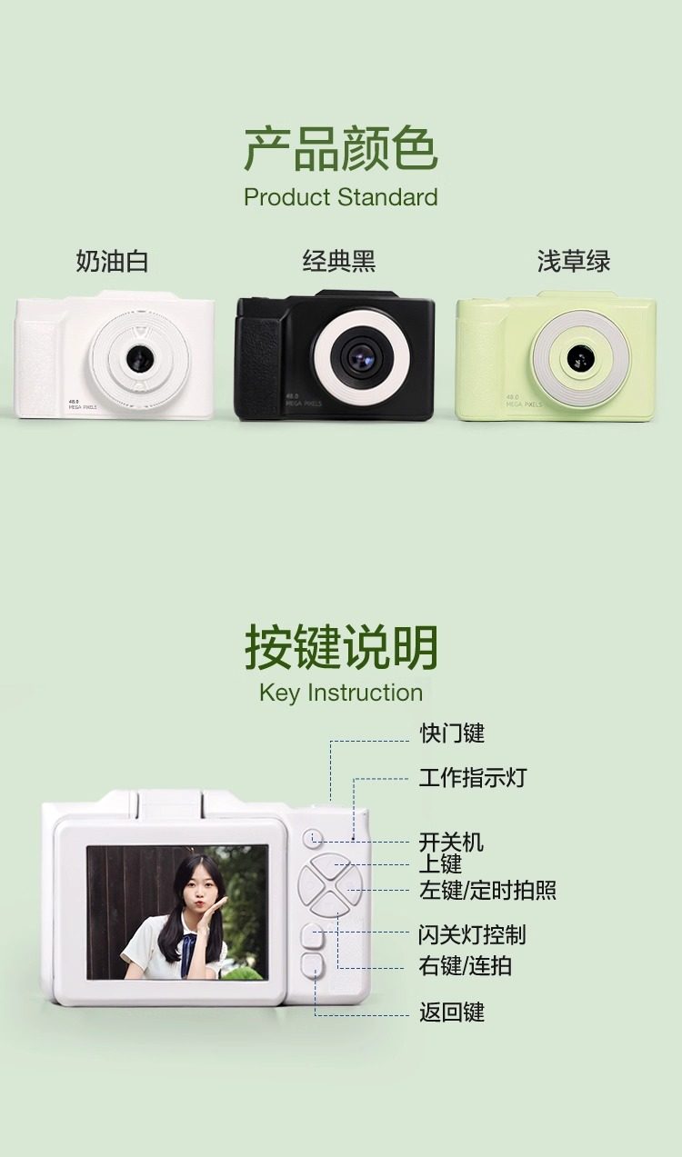 | Color Classification | First Love White|50 Million|[Flip Screen + 16X Zoom + Hd Video Recording + Fill Light],Green Grass|50 Million|[Flip Screen + 16X Zoom + Hd Video Recording + Fill Light],Cool Black|50 Million|[Flip Screen + 16X Zoom + Hd Video Recording + Fill Light] |