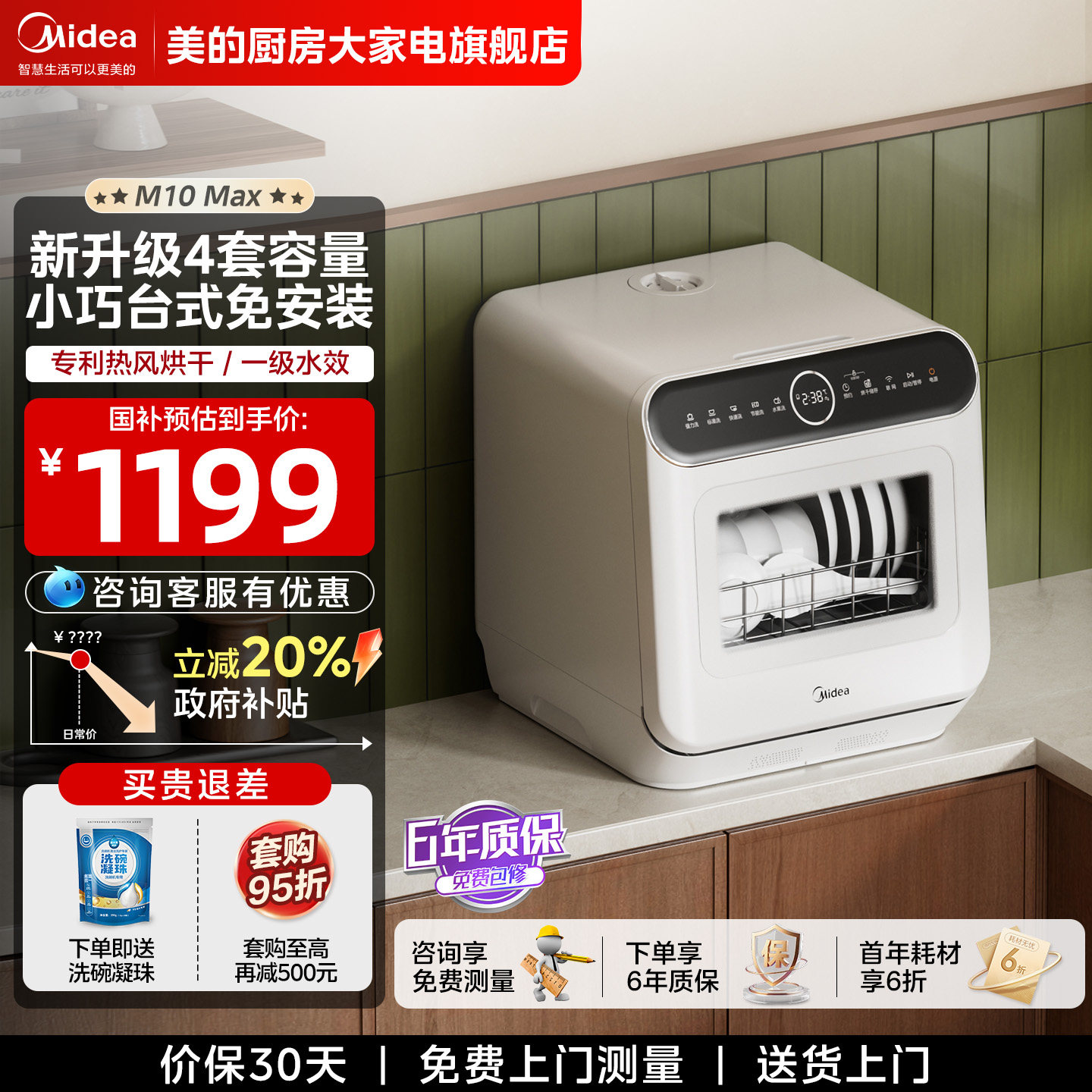 Midea Dishwasher M10Max Fully Automatic Household Countertop No-Installation Cleaning, Drying, and Disinfecting All-In-One 4 Sets Small Size