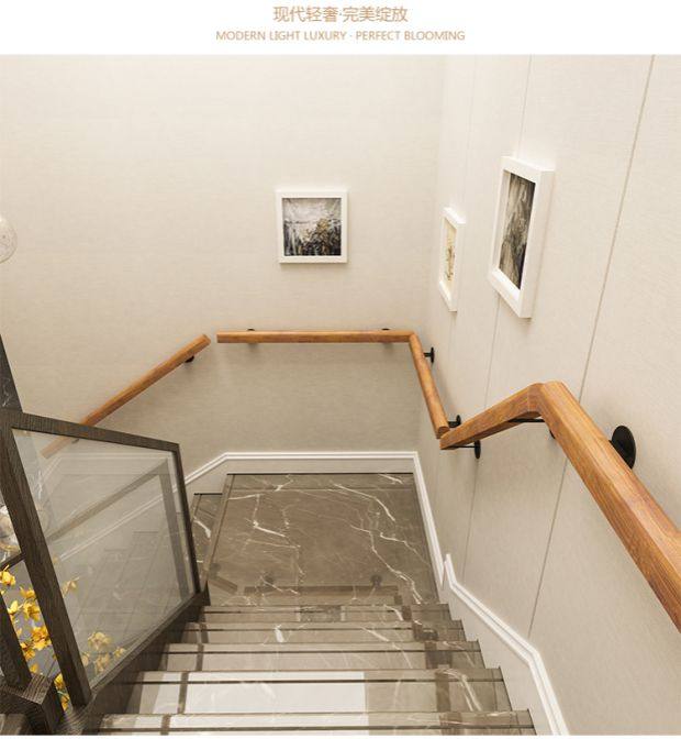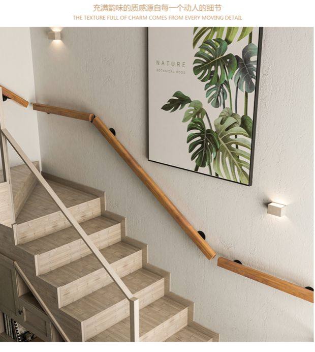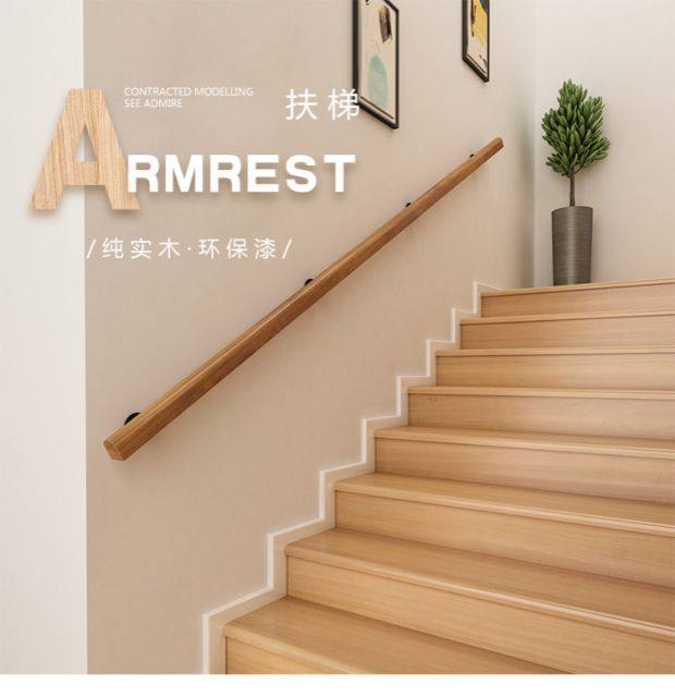 Simple Industrial Style Solid Wood Stair Handrail, Trendy Villa Indoor Wall-Mounted Non-Slip Toddler Stair Luxury Wooden Handrail