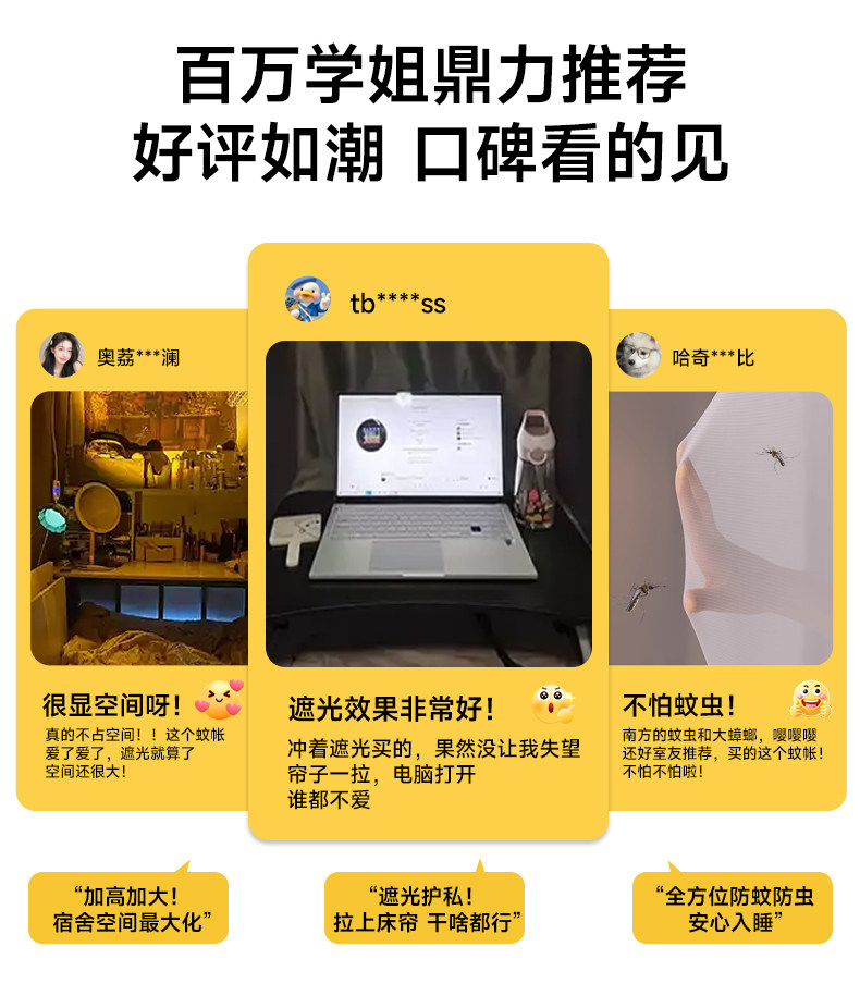 Mosquito Net for Student Dormitory, Blackout Bed Curtain, New Single Bunk Bed, Full Coverage for Lower Bunk, All-In-One, No Installation Bracket Required
