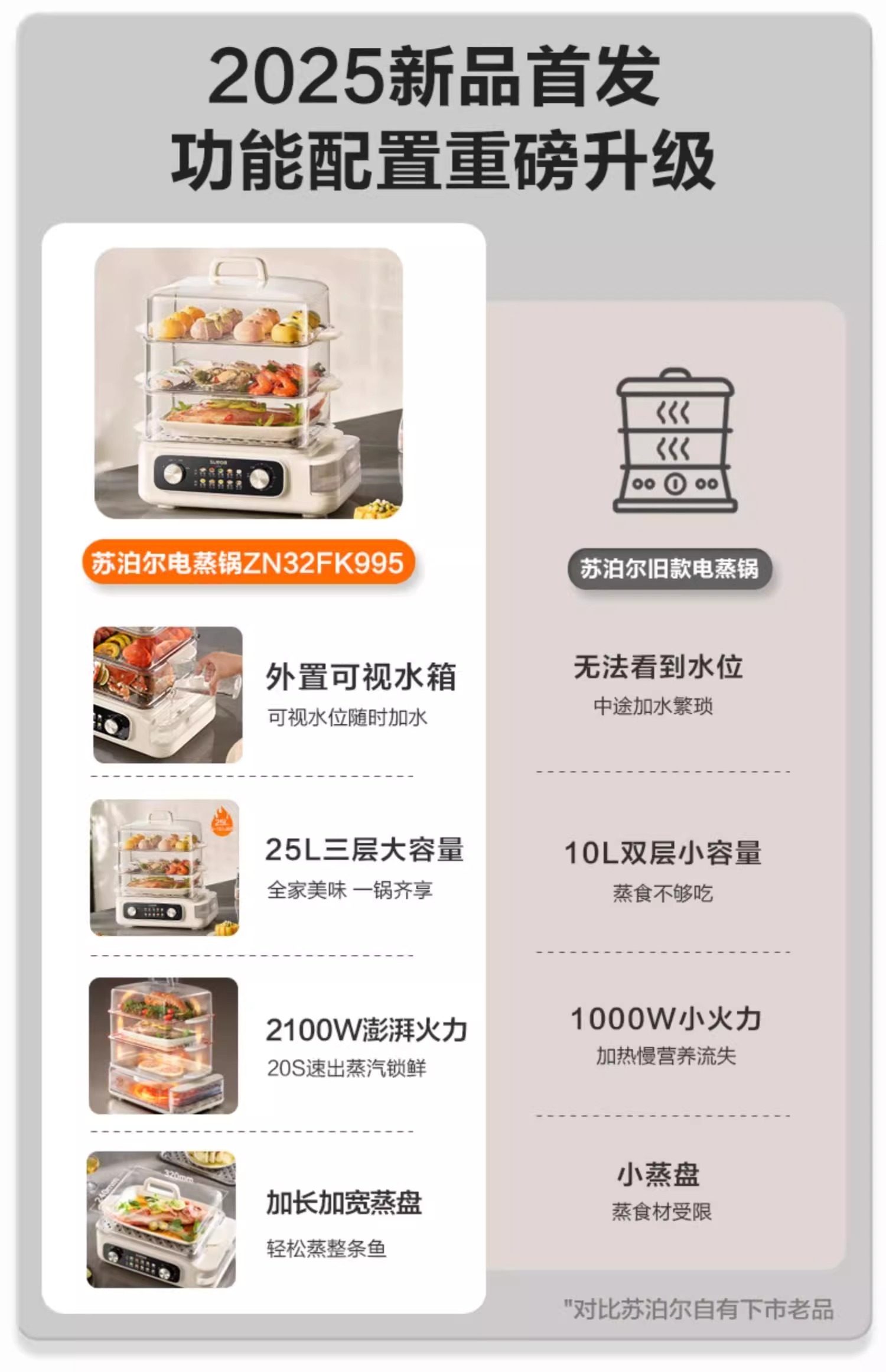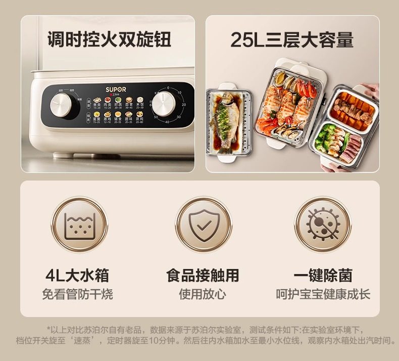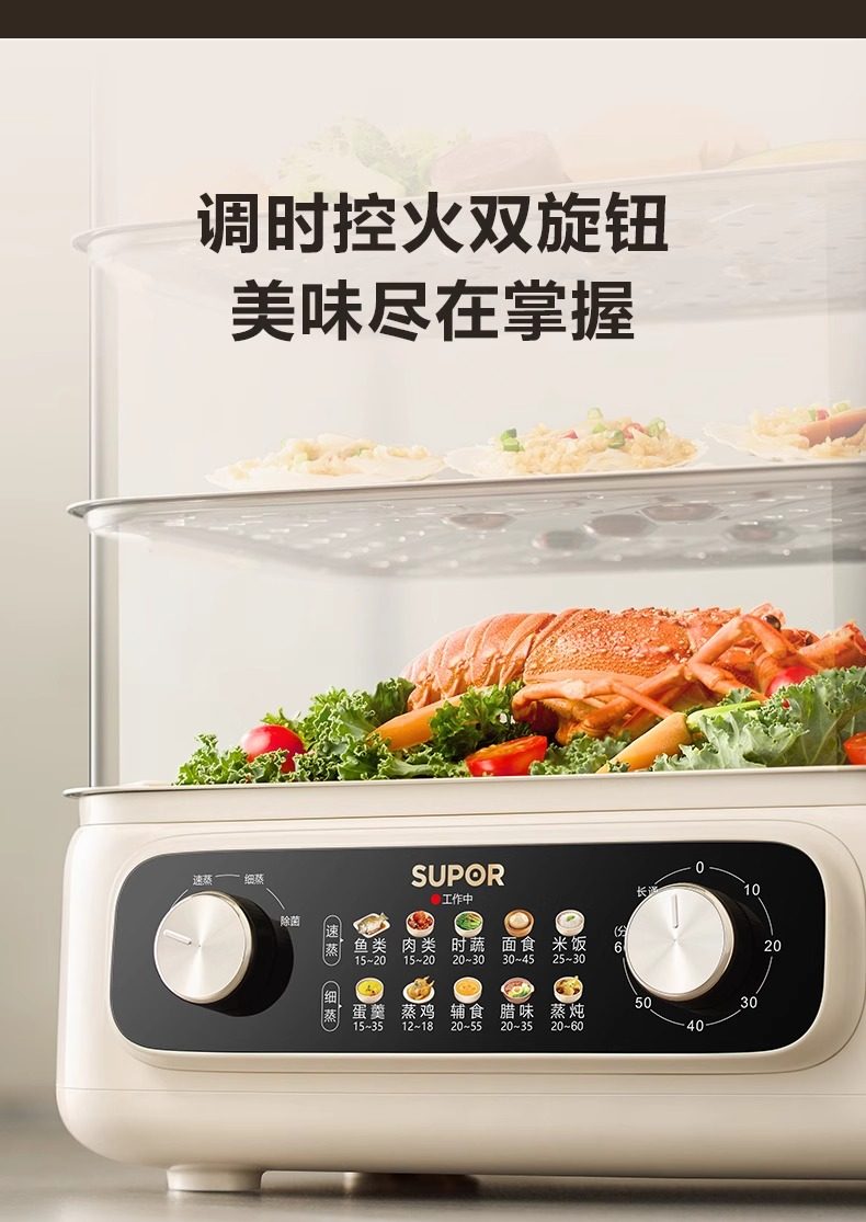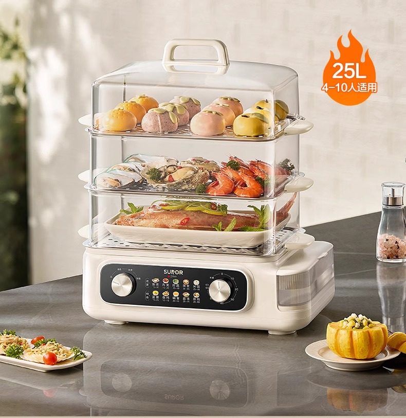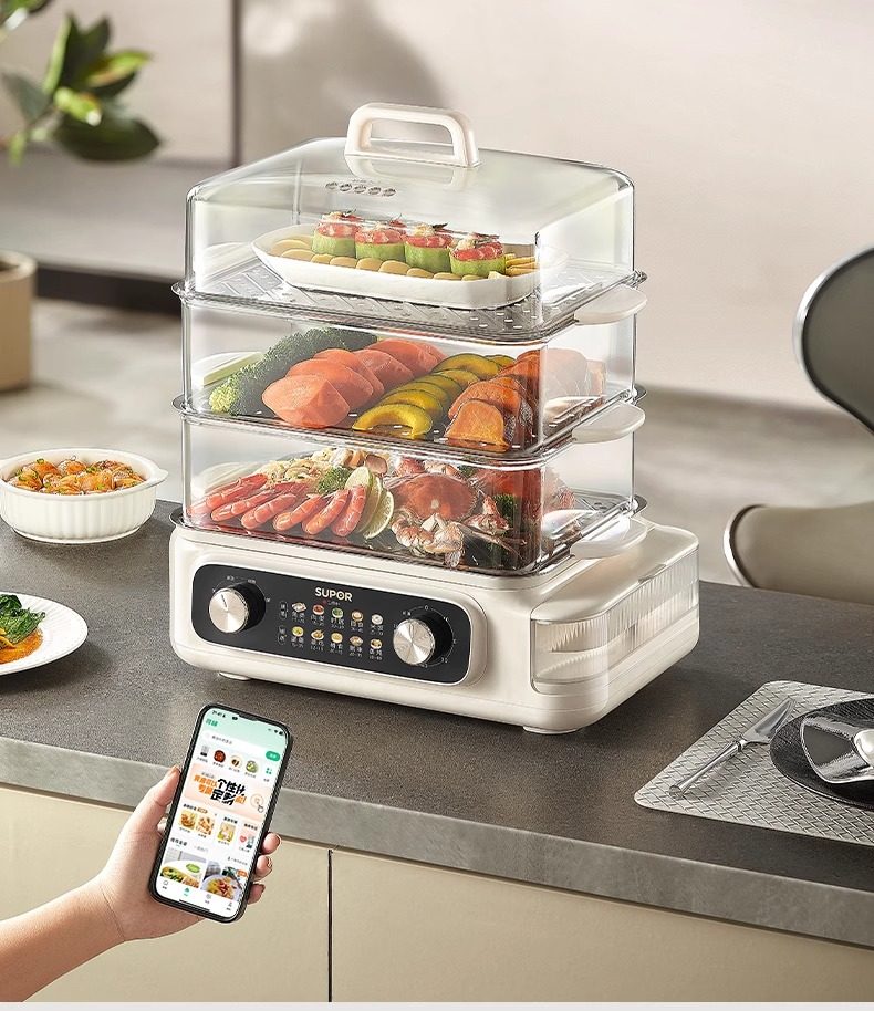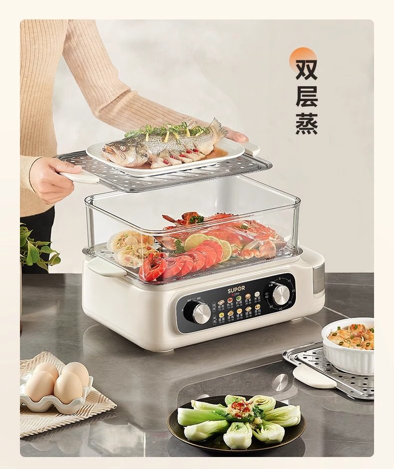 Supor Electric Steamer Multifunctional Household Three-Layer Large Capacity Fully Automatic Timed Steam Pot Steamer 2025 New Model