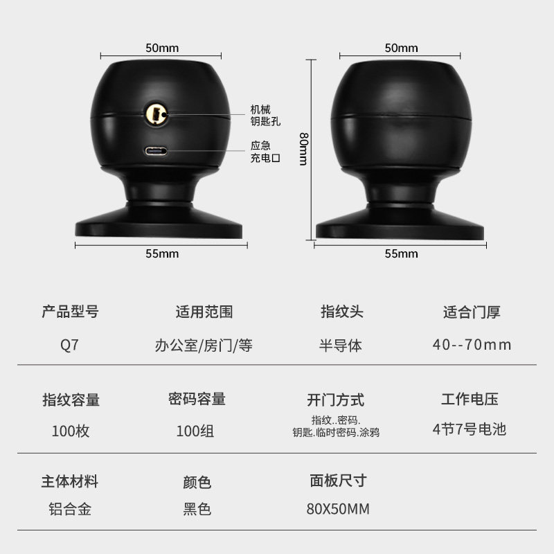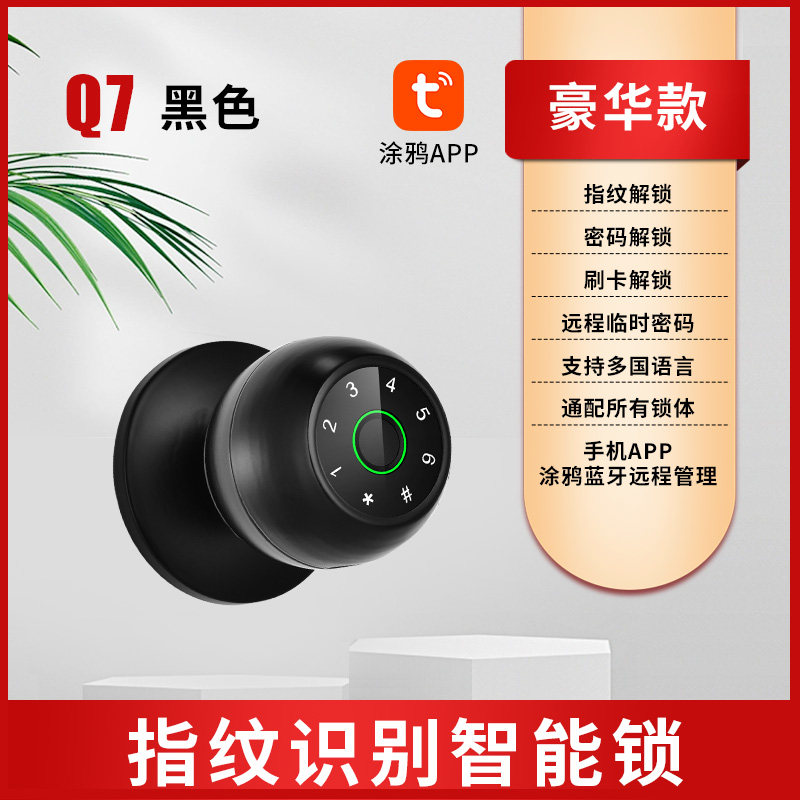 Wooden Door Spherical Smart Lock Semiconductor Fingerprint Recognition Password Lock Smart Lock Key Lock Smart Home Mechanical Lock