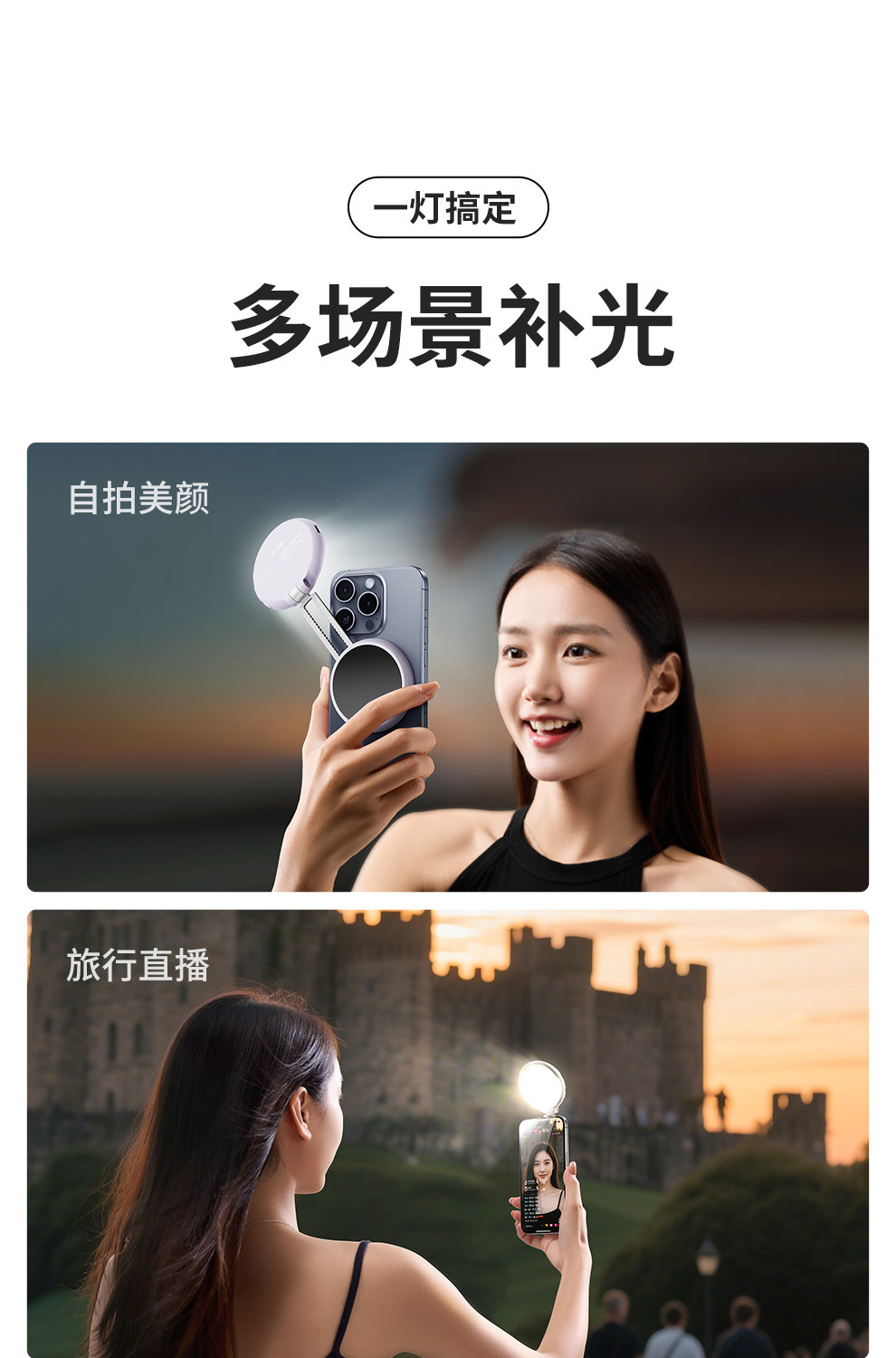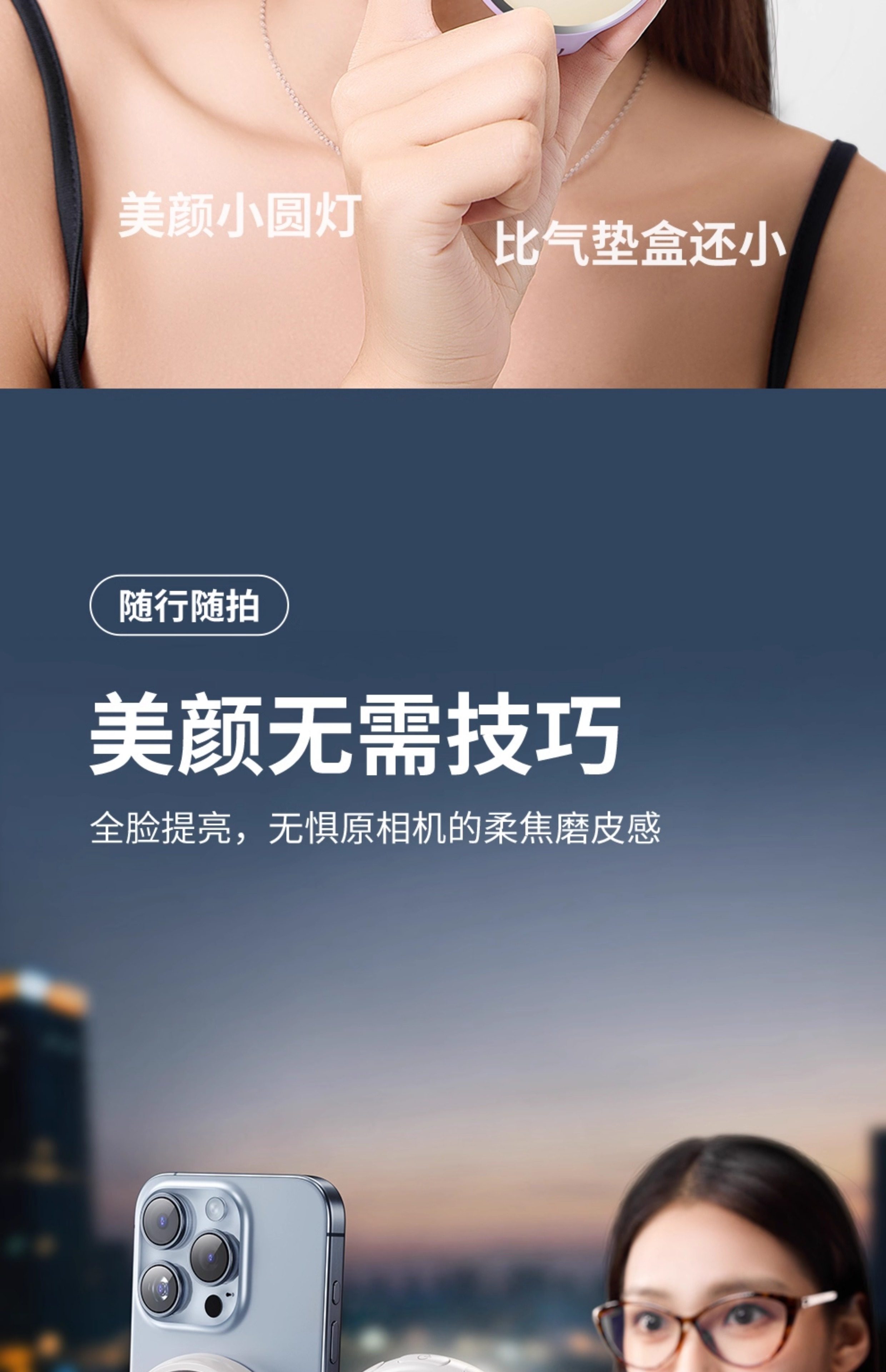 Xiaotian V3 Mobile Phone Fill Light, Magnetic Portable Outdoor Selfie Beauty Light, Streamer Photography Handheld Pocket Light, Desktop Soft Light, Food and Facial Photography Clip-On Ring Mini Light