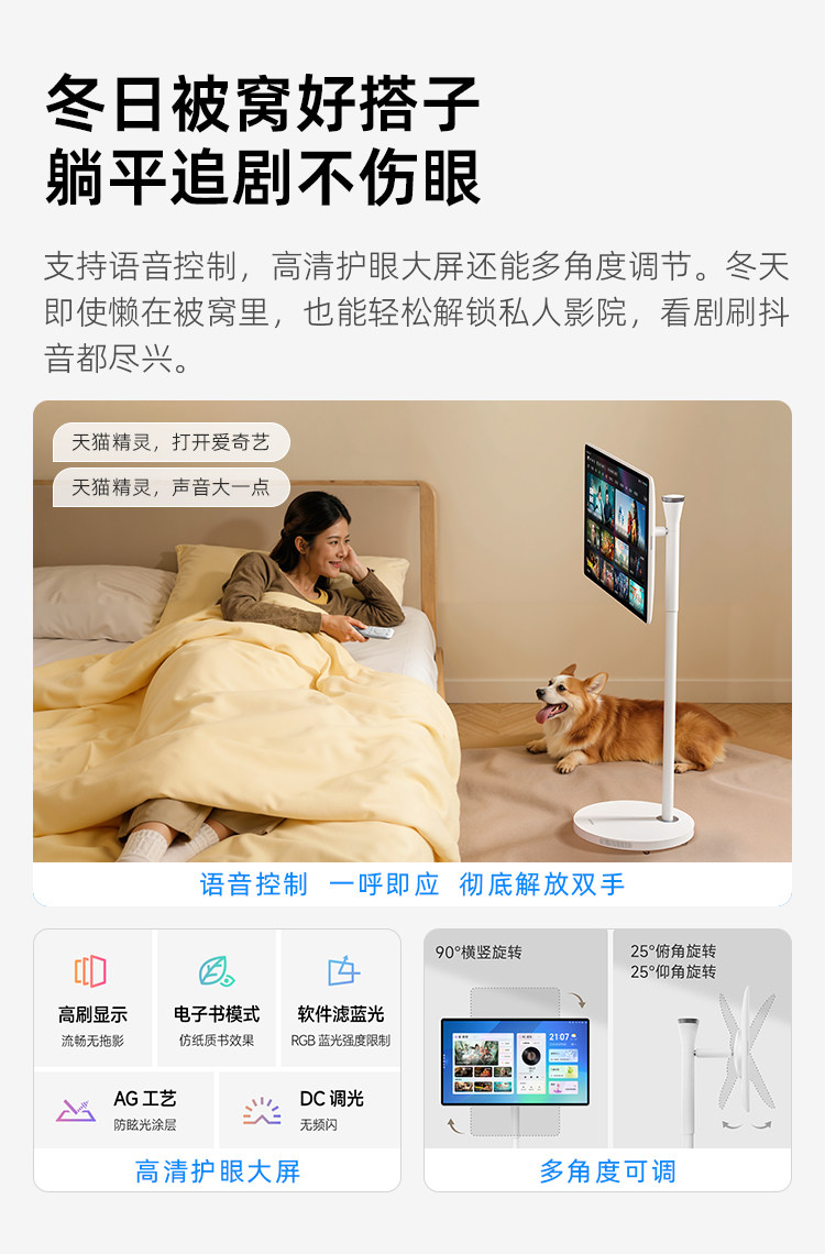 [Limited Time National 20% Discount]Tmall Genie Wow Bestie Machine 27inch Mobile Tv Tablet 4K Hd Smart Screen Anti-Blue Light Eye Protection Panoramic Sound for Watching Shows and Singing Karaoke Double Holiday Gift
