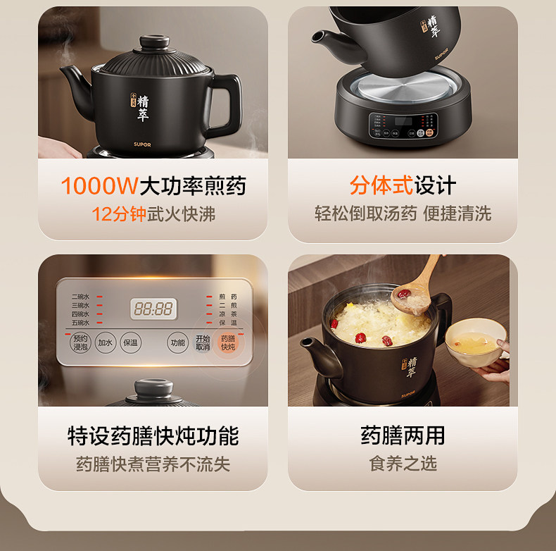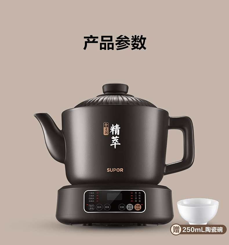 Supor Decoction Pot, Traditional Chinese Medicine Electric Decoction Pot, Fully Automatic Medicine Boiling Pot for Home Use, Electric Clay Pot for Making Traditional Chinese Medicine, Health Pot, Medicine Pot