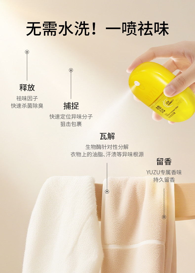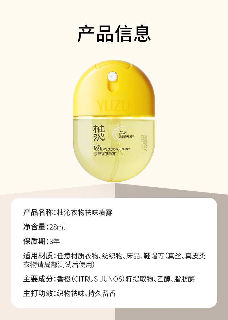 Yuxianggu Yuzi Clothing Fragrance Deodorizing Spray Long-Lasting Light Fragrance 28ml Deodorizing Household Non-Irritating