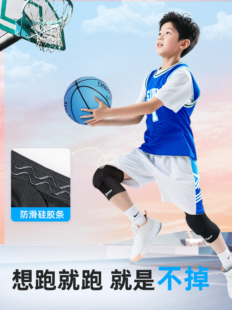 Xtep Children's Knee Pads for Basketball, Specialized Sports Knee and Elbow Protection for Boys, Anti-Fall Football Protective Gear, Thin for Summer