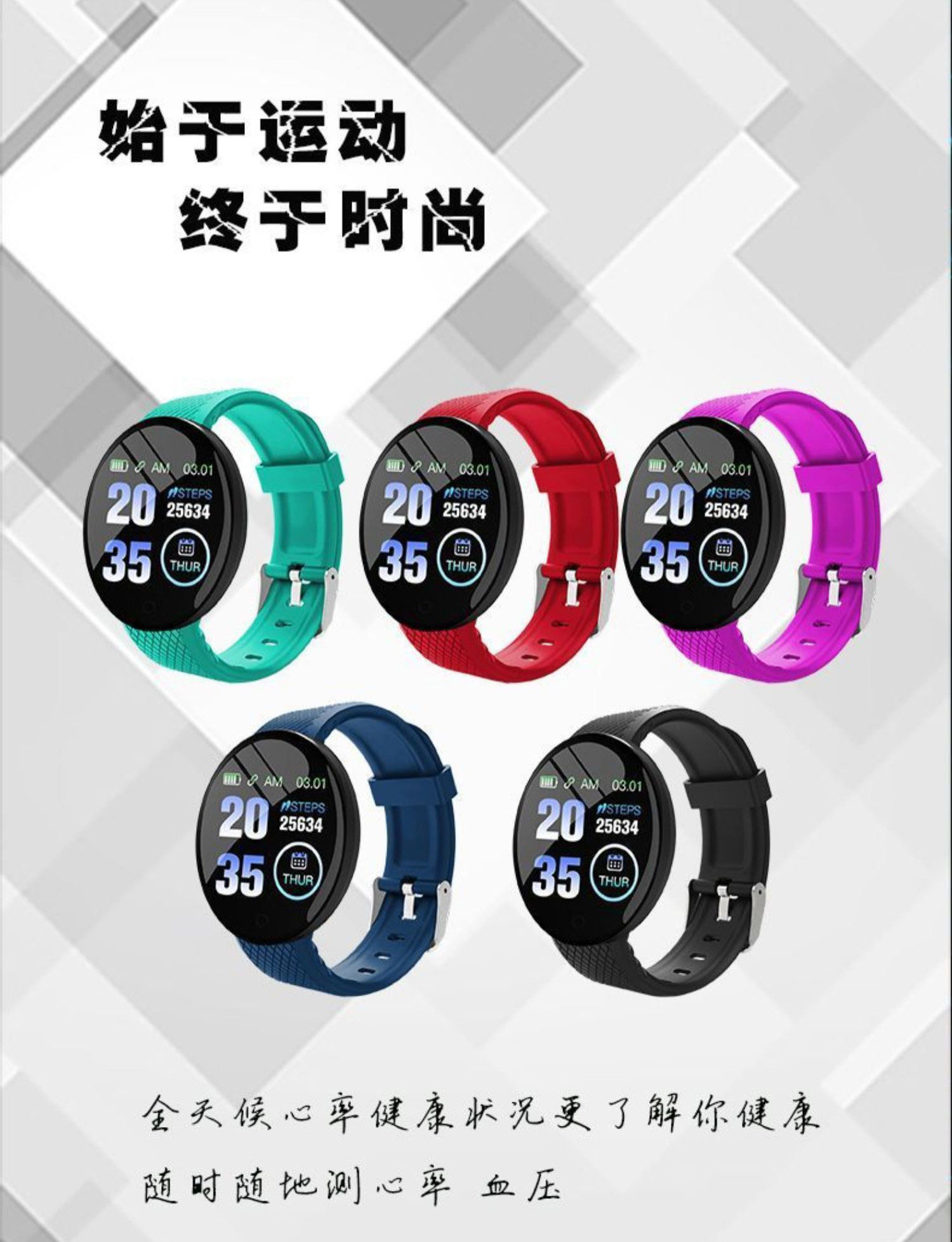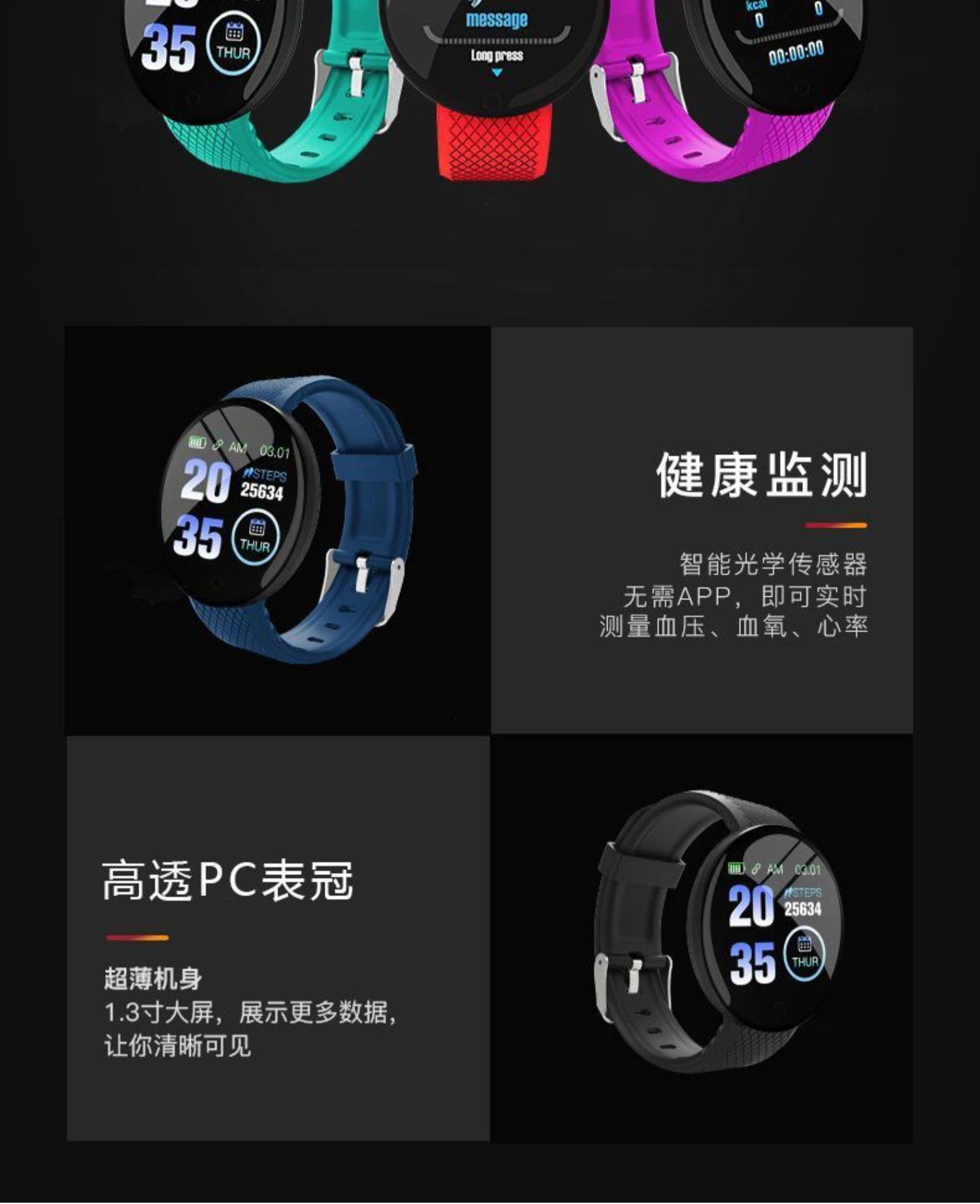 Smart Watch, Sports Blood Pressure Measurement, Heart Rate, Blood Oxygen, Sleep, Multi-Functional Pedometer for Men and Women, Bluetooth Digital Watch