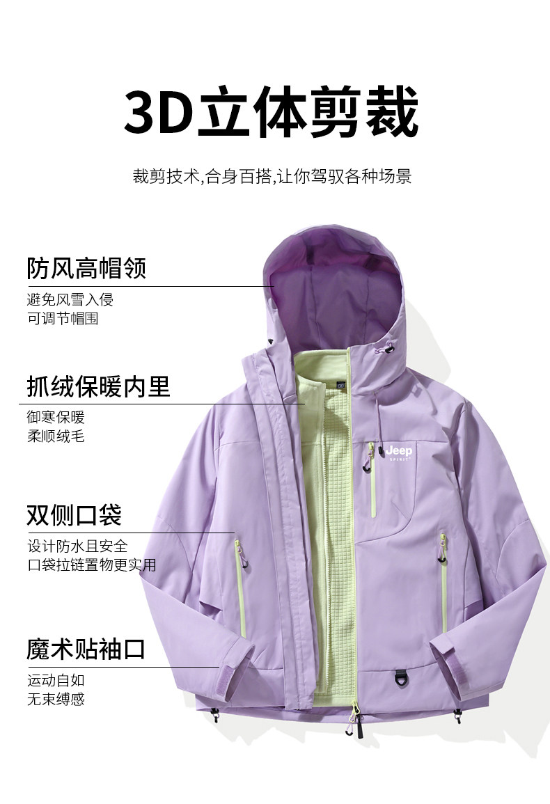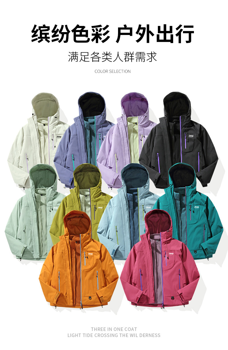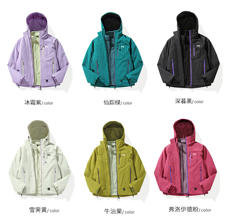 Jeep Dopamine Jacket Women's Autumn Sichuan-West Tibet Outdoor Three-In-One Windproof Waterproof Mountaineering Jacket