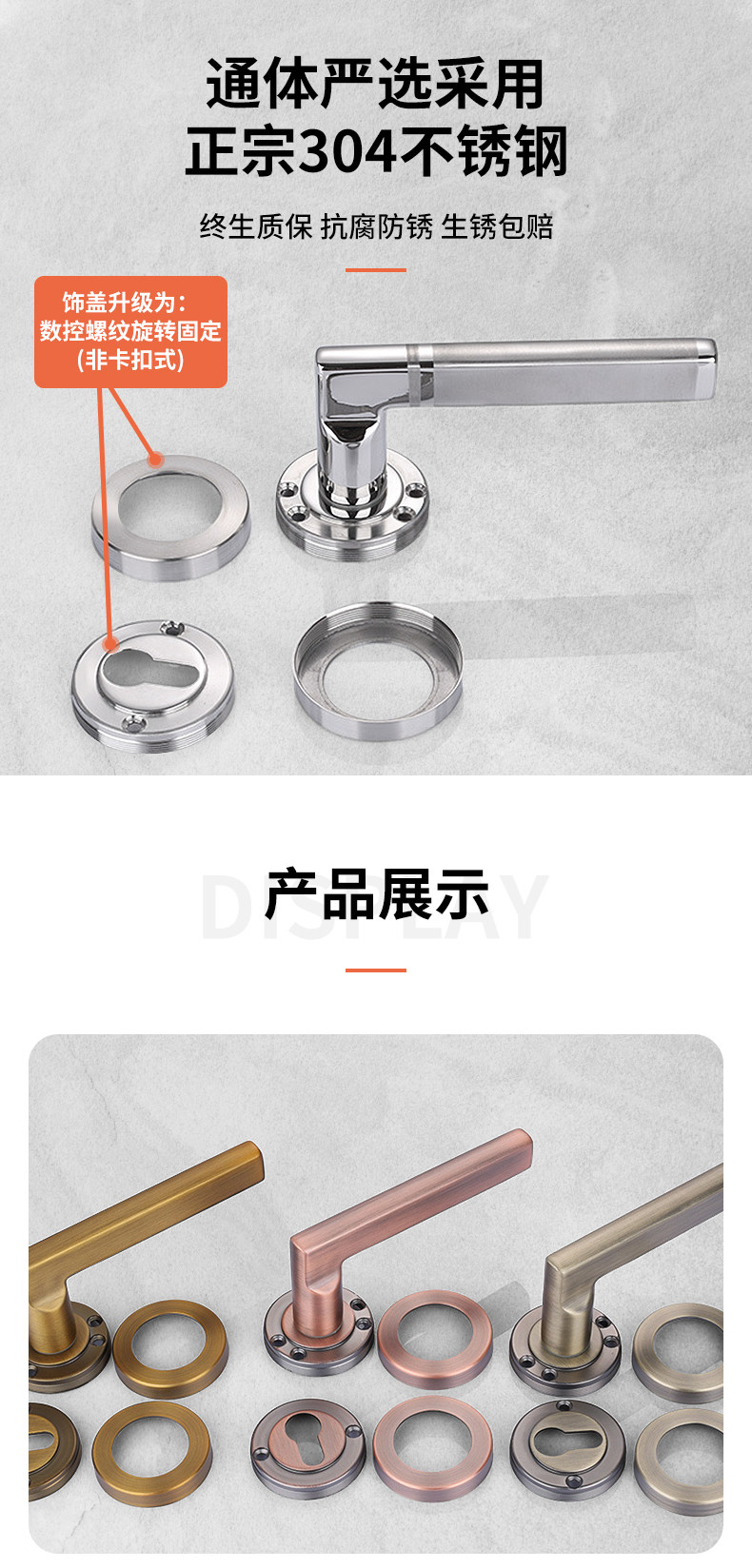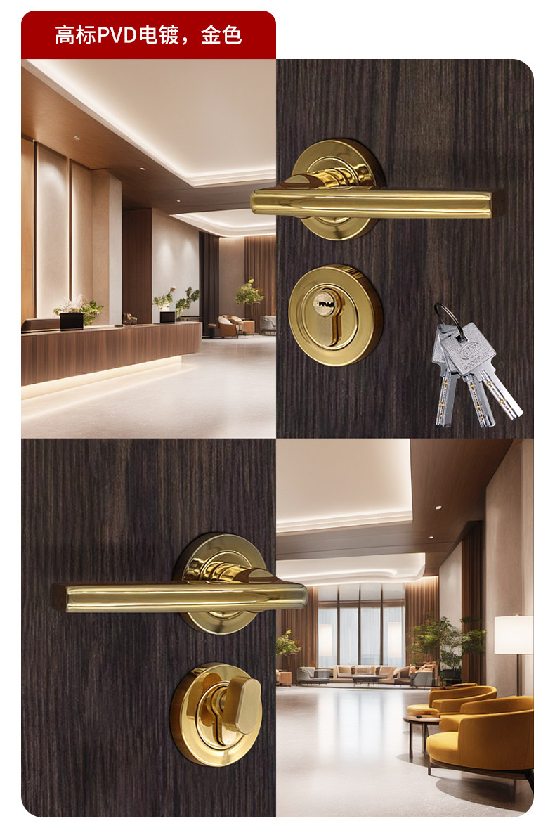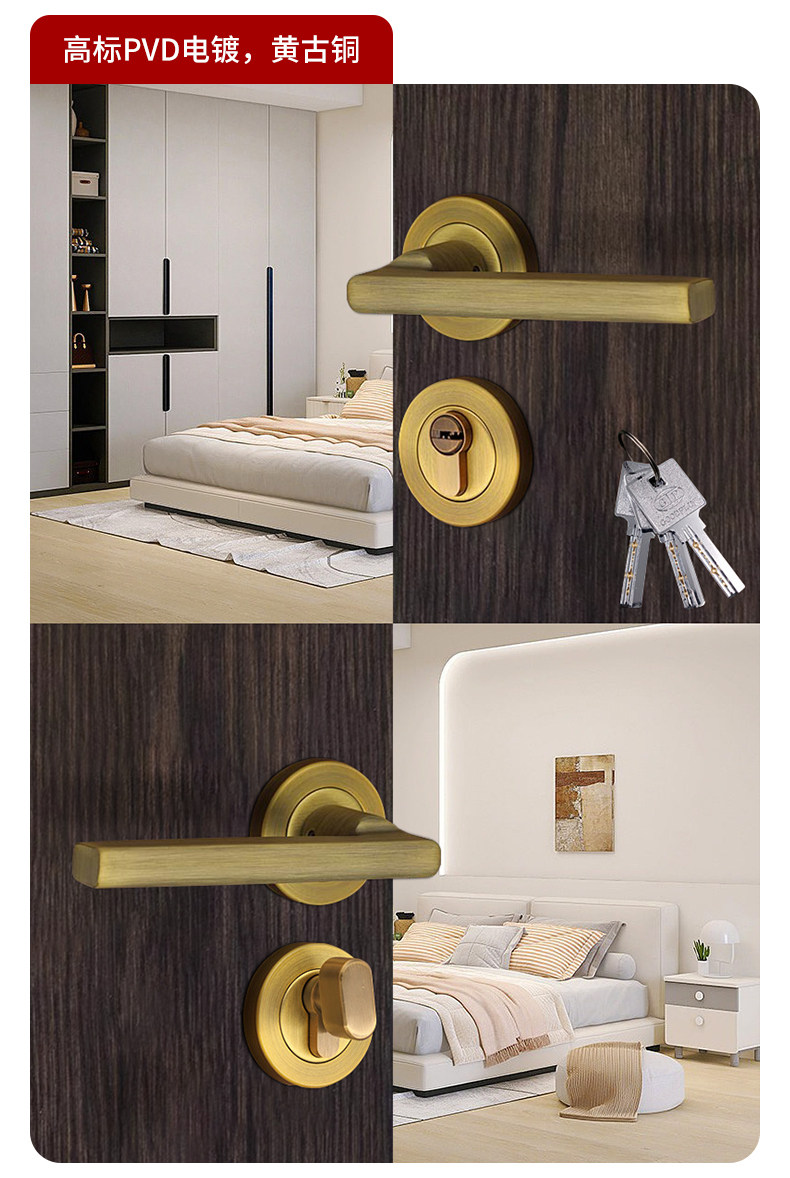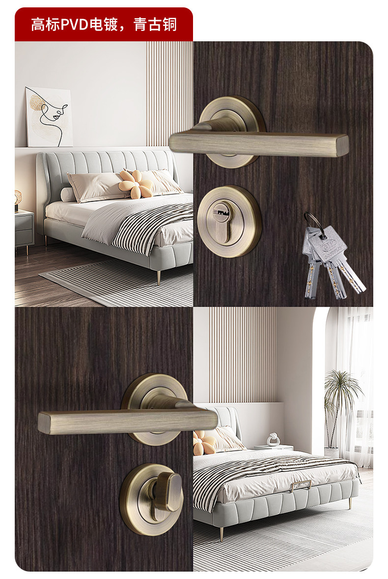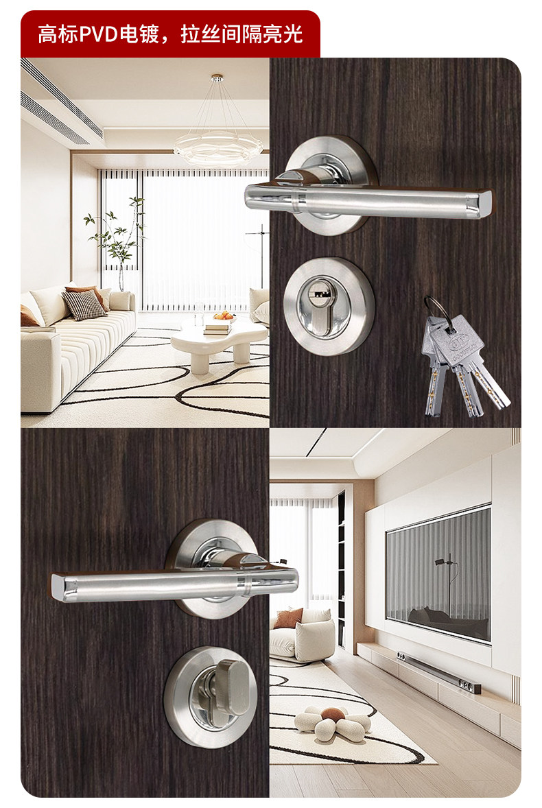 Door Lock 304 Stainless Steel Bedroom Silent Door Lock Universal Home Indoor Room Wooden Door Full Set of Split Lock