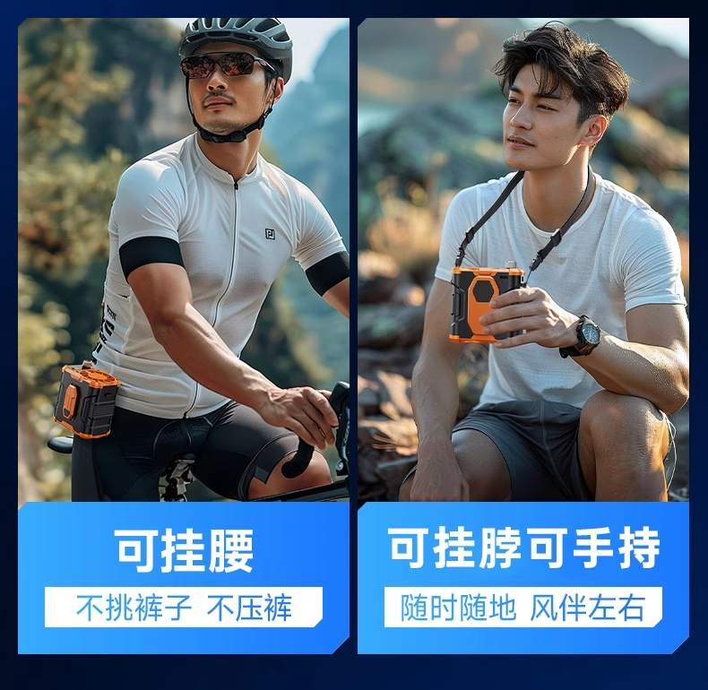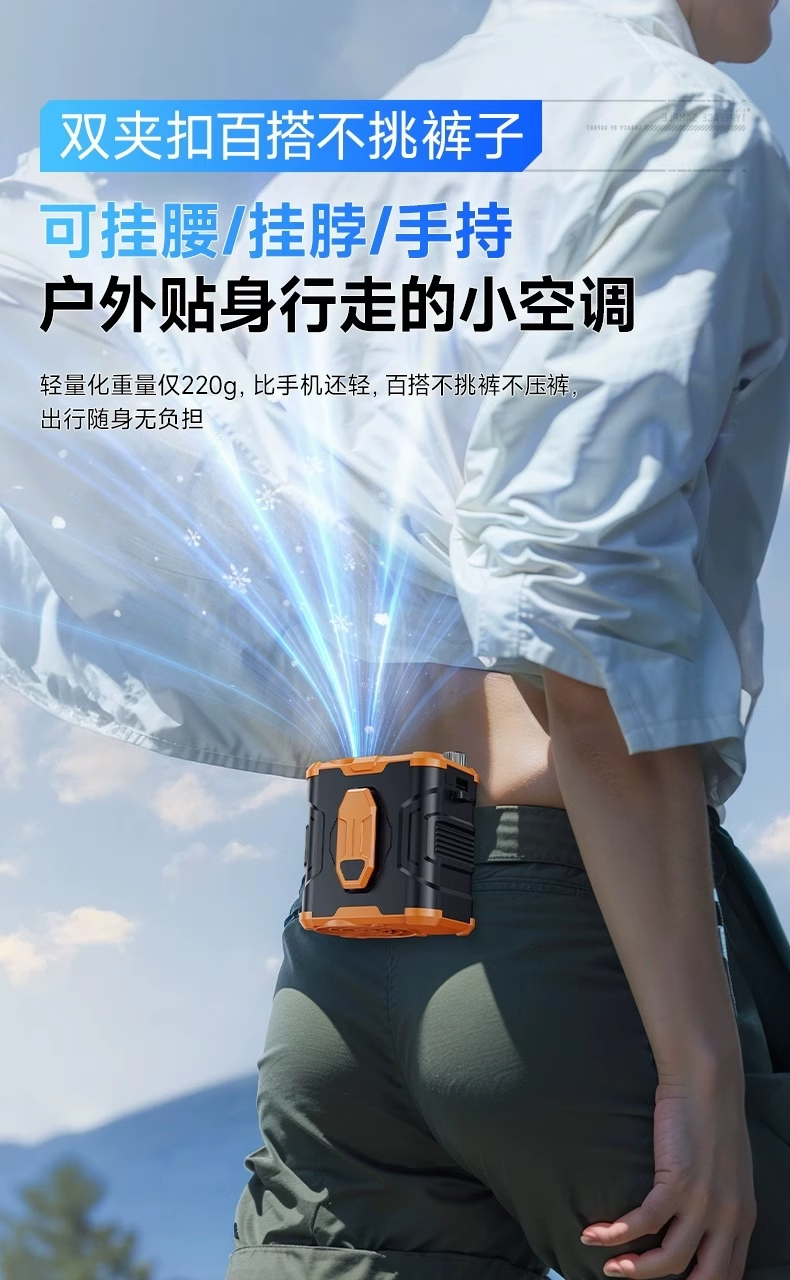 Waist-Mounted Fan, Portable Clip-On Cooling Device for Relieving Heat, High-Temperature Outdoor Construction Site Rechargeable Powerful Small Neck-Hanging Fan for Summer, Kitchen Cooling, Air Conditioning, Wearable Clothing, Ultra-Long Battery Life