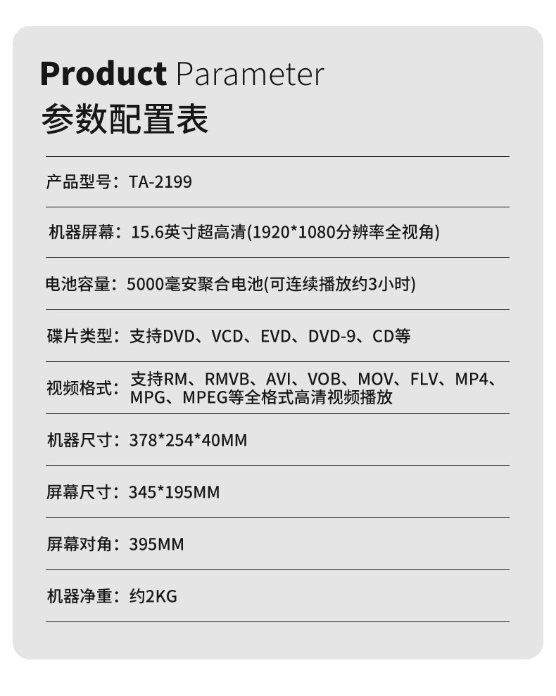| Play Format | MP3-CD,CD,RMVB,CD-R,SVCD,MPEG4,VCD,DVD |