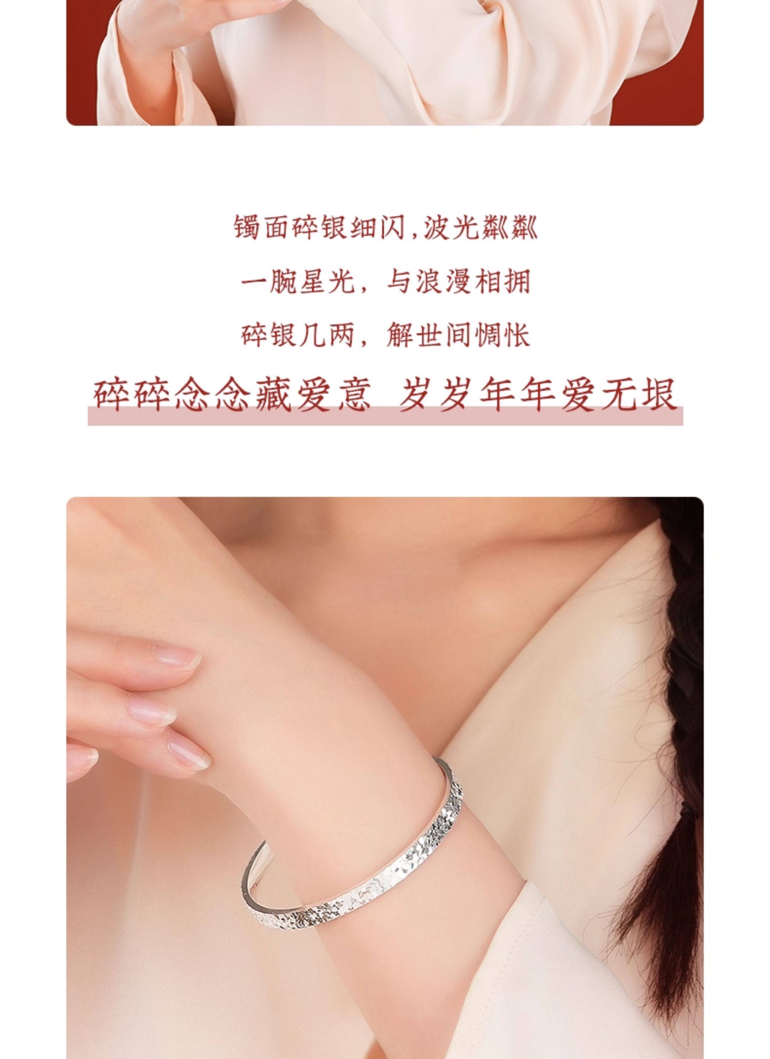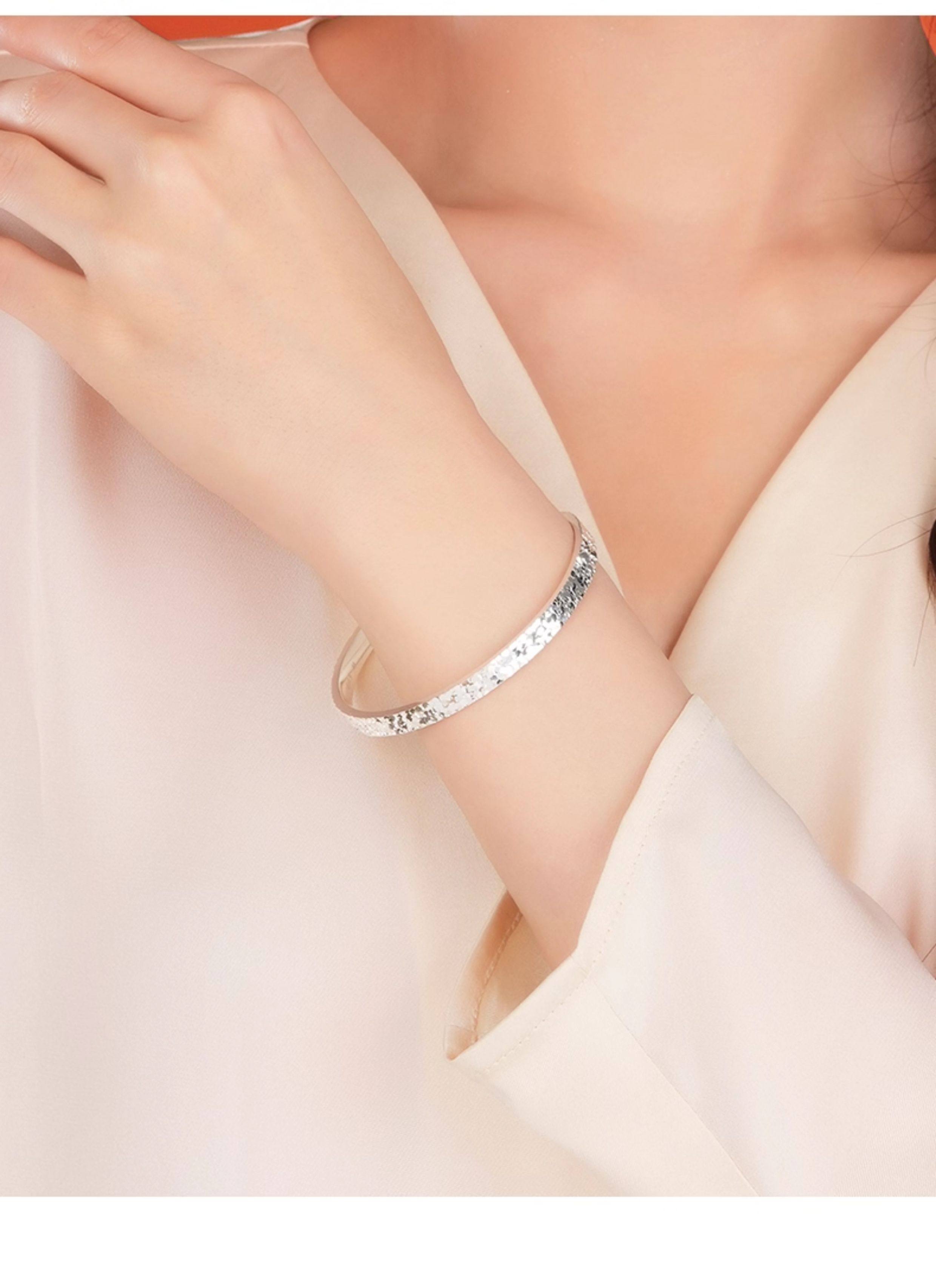 Broken Ice Bracelet for Women, Pure Silver 9999, Light Luxury, Niche, Exquisite, Solid Closed Silver Bracelet, Birthday Gift for Girls