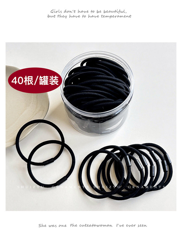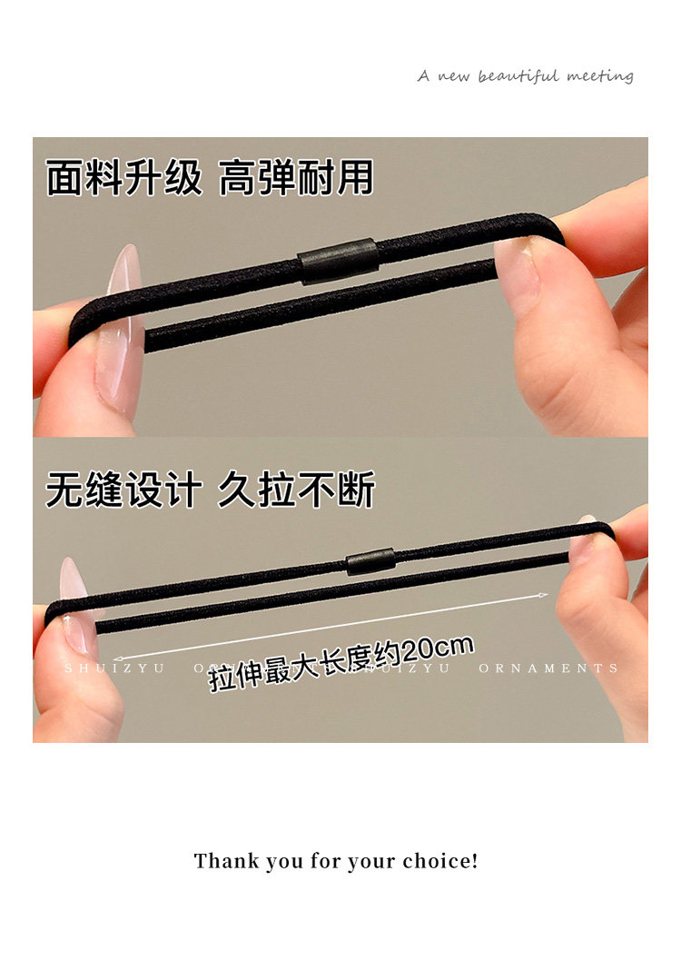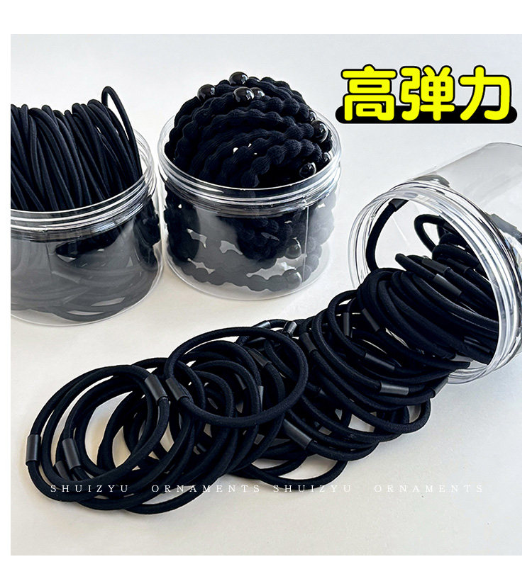 Black High-Elastic Hair Rope for Women 2025 New Classy Scalp Band Hair Tie Adult Durable Leather Set Headband Headwear