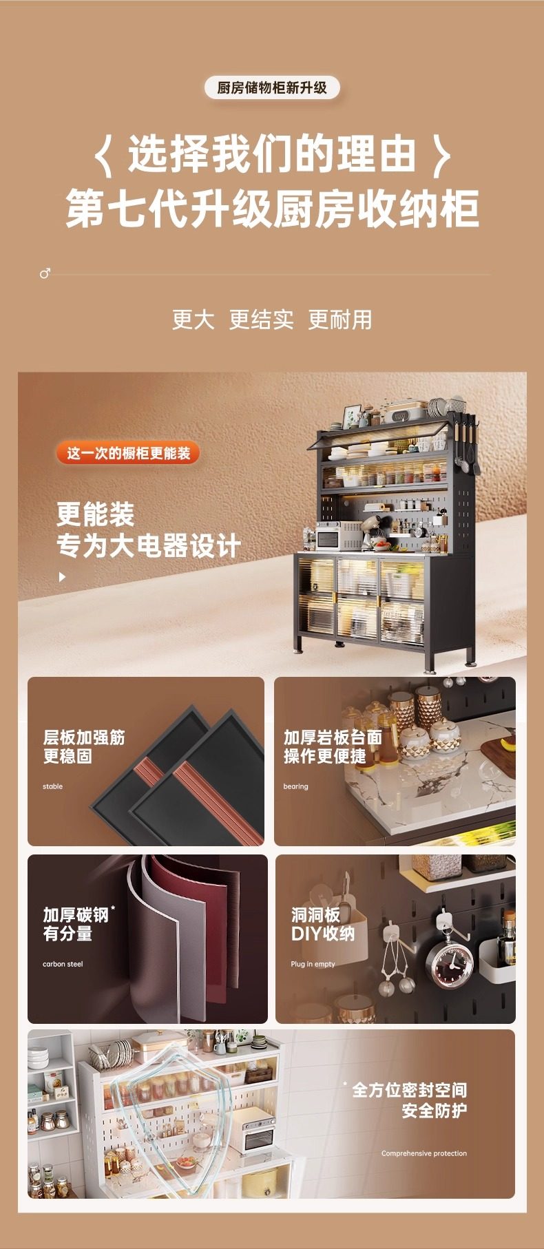 Kitchen Multi-Functional Storage Rack Slate Sideboard Household Dust-Proof Storage Cabinet Multi-Layer Snack Cabinet Floor-Standing Storage Cabinet