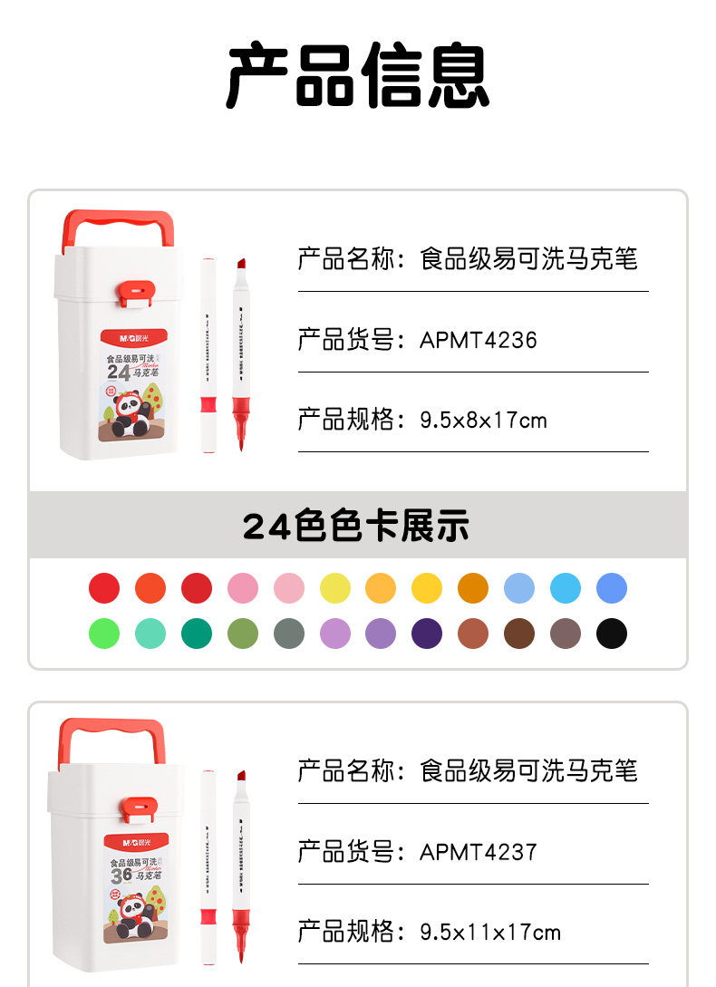 | Model | Morning Light Food Grade Easy Washable Marker Pen 24 Colors Apmt4236 |