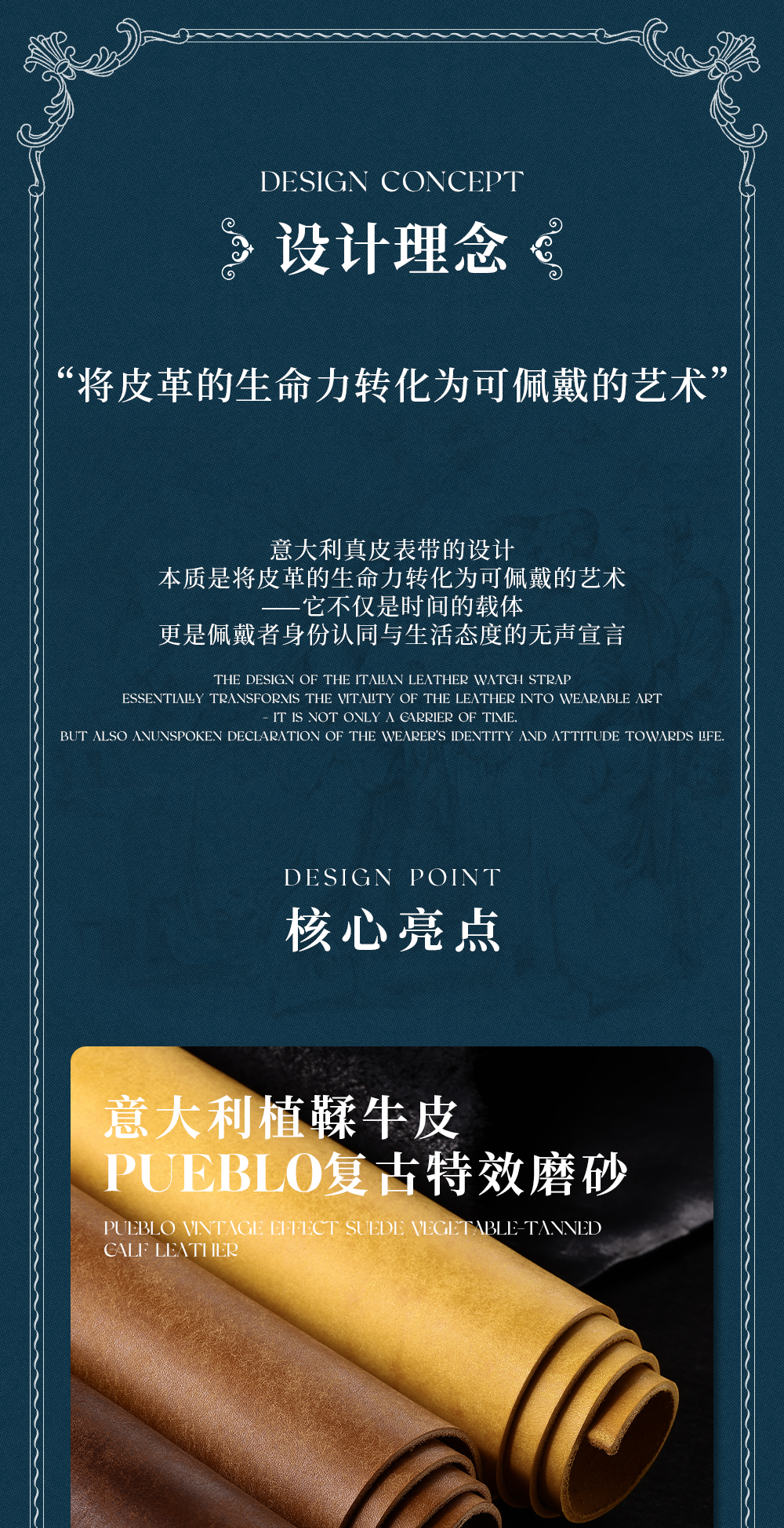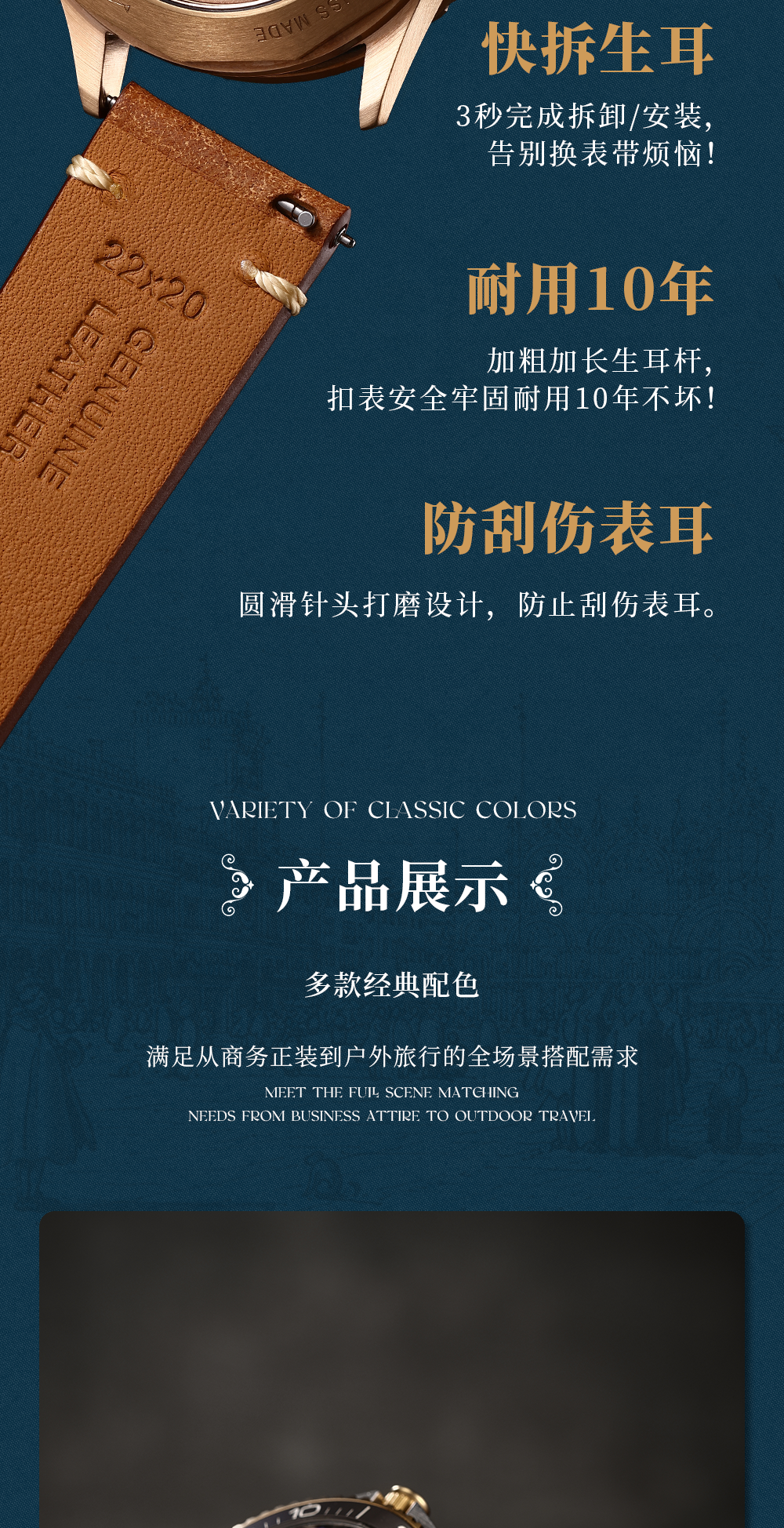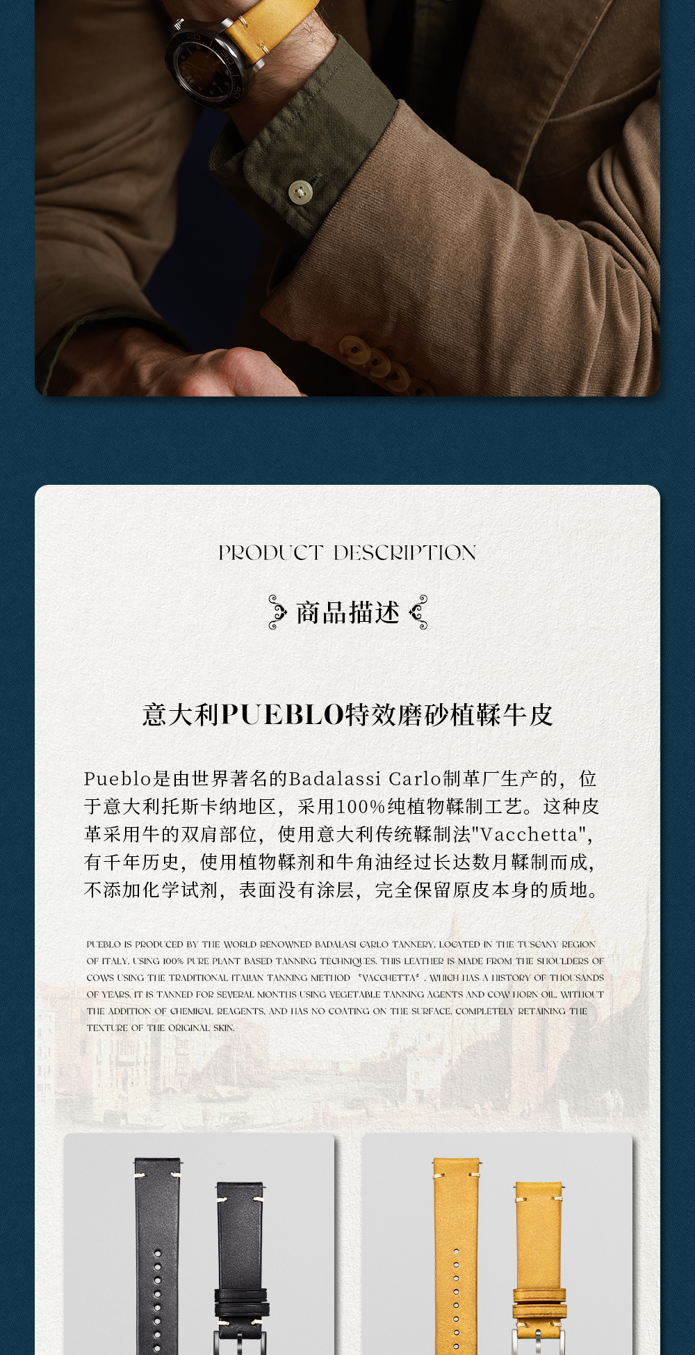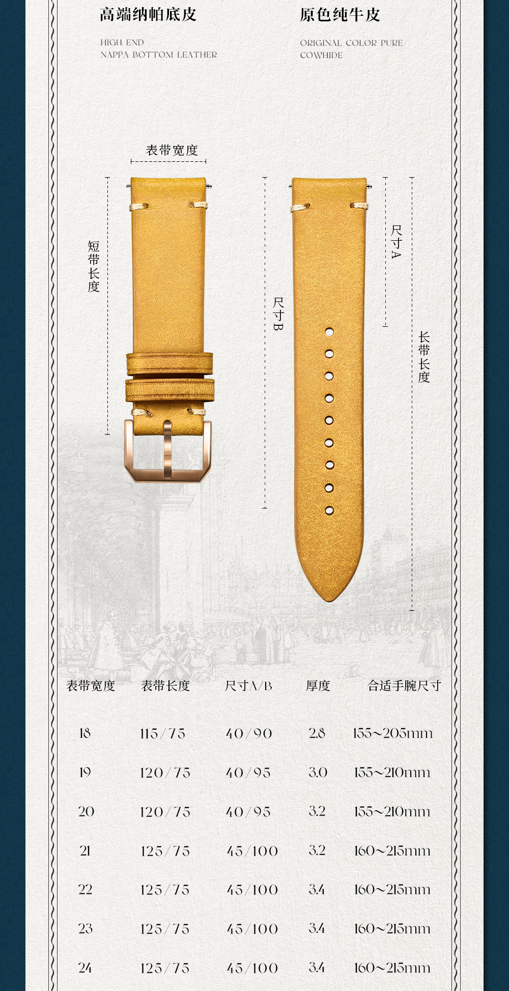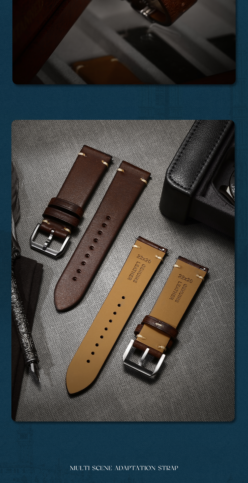 Italian Thick Cowhide Leather Strap, Vintage Frosted Handmade Genuine Leather Strap, 20Mm/22Mm Watch Chain, Watch Accessories