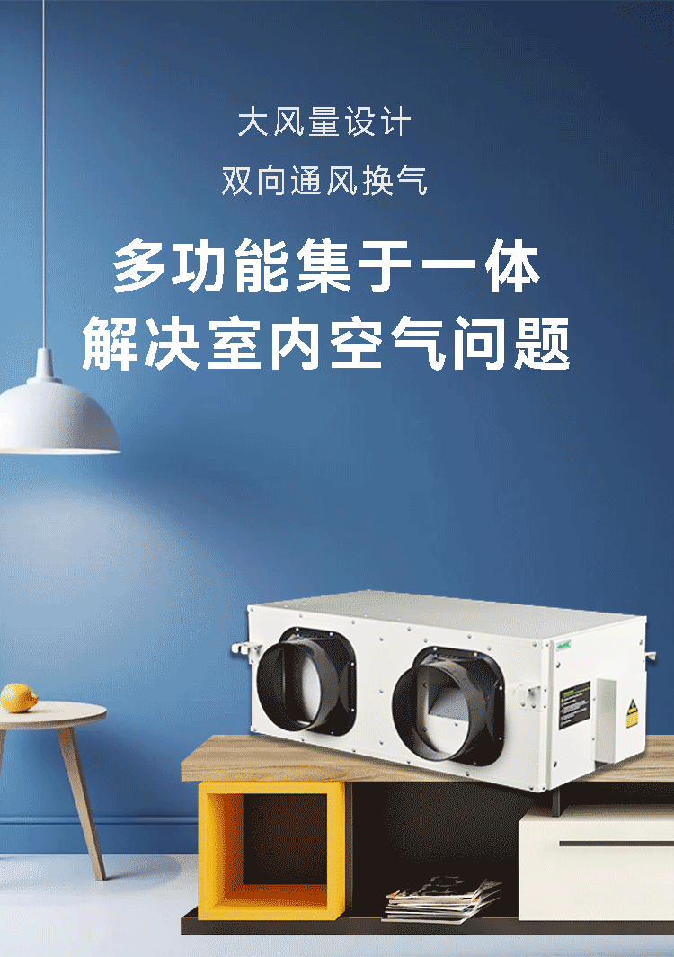Two-Way Flow Fresh Air Ventilator Whole-House Ventilation Ceiling-Mounted Home and Commercial Fresh Air System Ventilation All-In-One Machine